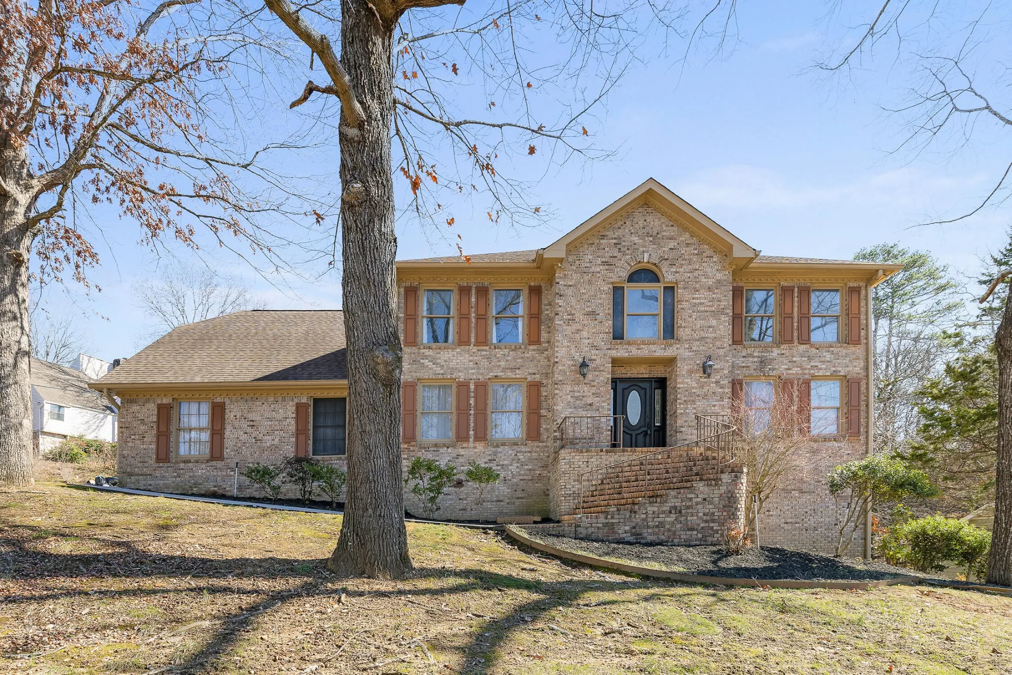 Prepare yourself for stunning lake views of Lake Chickamauga! This completely updated residence offers a perfect blend of modern luxury and scenic beauty. Step inside and be greeted by a contemporary interior, featuring updated baths, new flooring, light fixtures, and a fresh palette of colors that complement the abundance of natural light. The updated eat-in kitchen is a chef’s delight, boasting custom-built cabinets, quartz countertops, a large island, and state-of-the-art built-in appliances including an oven and microwave. The wood-burning fireplace in the living room is adorned with a custom mantle and built-in shelving, creating a cozy focal point for gatherings. The separate dining room is spacious and an elegant setting for entertaining guests. A sunroom overlooks the lush backyard, providing a tranquil space to unwind. Upstairs, discover a bonus room with newly added dry-bar featuring quartz countertops and backsplash.