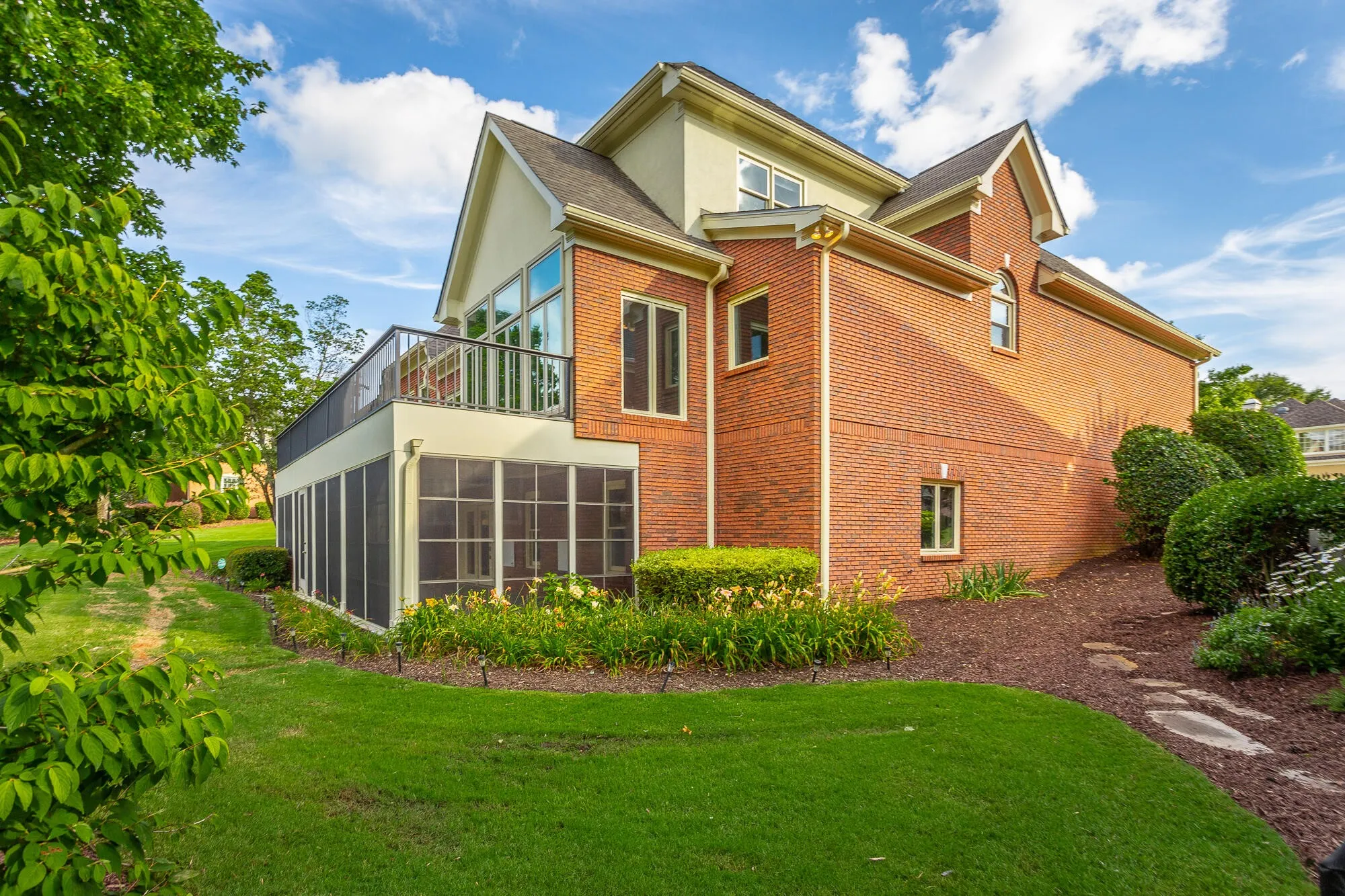 Chattanooga Home for Sale! Beautiful custom-built carriage home featuring 4 bedroom, 3 ½ bathroom with bonus room located in the prestigious golf community of Council Fire. Open your front door and step into your updated foyer with large ceramic tile and coat closet ideally placed. The beautiful dining room is ready to shine with large window, new chandelier, and beautiful hand-scraped hardwood floors. With semi-open floor plan, family and friends will flow seamlessly from dinner to an evening of fun story telling and games in your spacious living room. During the day the natural light spills into your living room through the large windows and tall cathedral ceiling brightening not only the room but your mood too. Double-sided gas fireplace allows you to enjoy cozying up by the fire in either your living room or kitchen area. Your spacious kitchen with tile floor will be the heart of your home with space for everyone including casual dining space. New gas double oven and stove, along with the subzero refrigerator with brand new elements are ready for the chef in your family. Just off the garage the updated laundry room includes washer & dryer, cabinets, wash sink, and a pantry! Ready to unwind, escape to your owner’s retreat located on the main level. Updated master en-suite beckons you to grab a book and relax in your sitting area. Remodeled master bathroom is gorgeous with custom granite double vanity and dressing table. You’ll love all your options in your walk-in tile shower with dual shower heads and a Rain shower head. Not to mention the practical design that includes built-in linen closet and private water closet. Large walk-in closet off the master bathroom is ready to become your next dressing room. Follow the hardwood steps upstairs for the kids get away. Large bonus room perfectly carpeted to absorb the sounds of kids playing, and 2 bedrooms! Ready for the morning rush, the full bathroom includes a private shower and water closet.