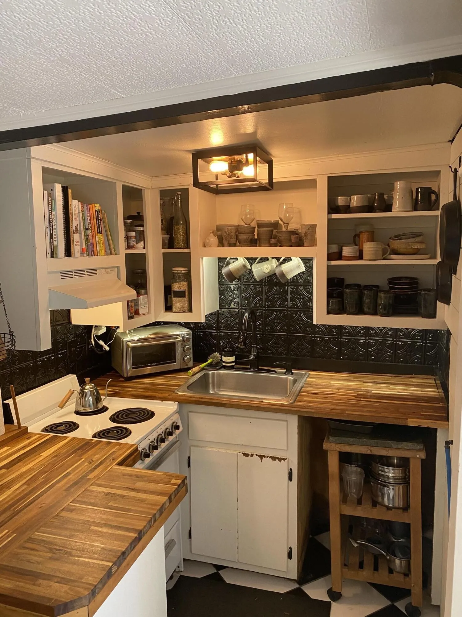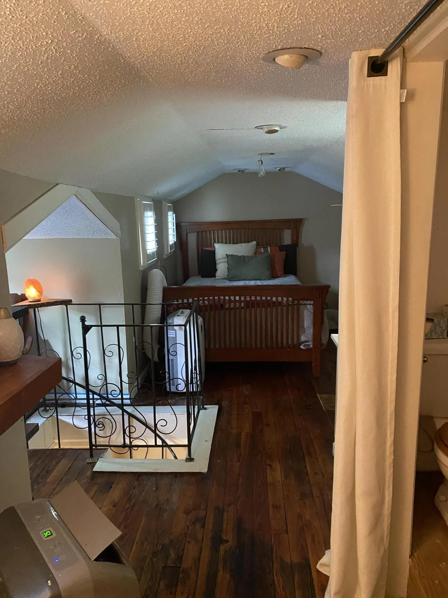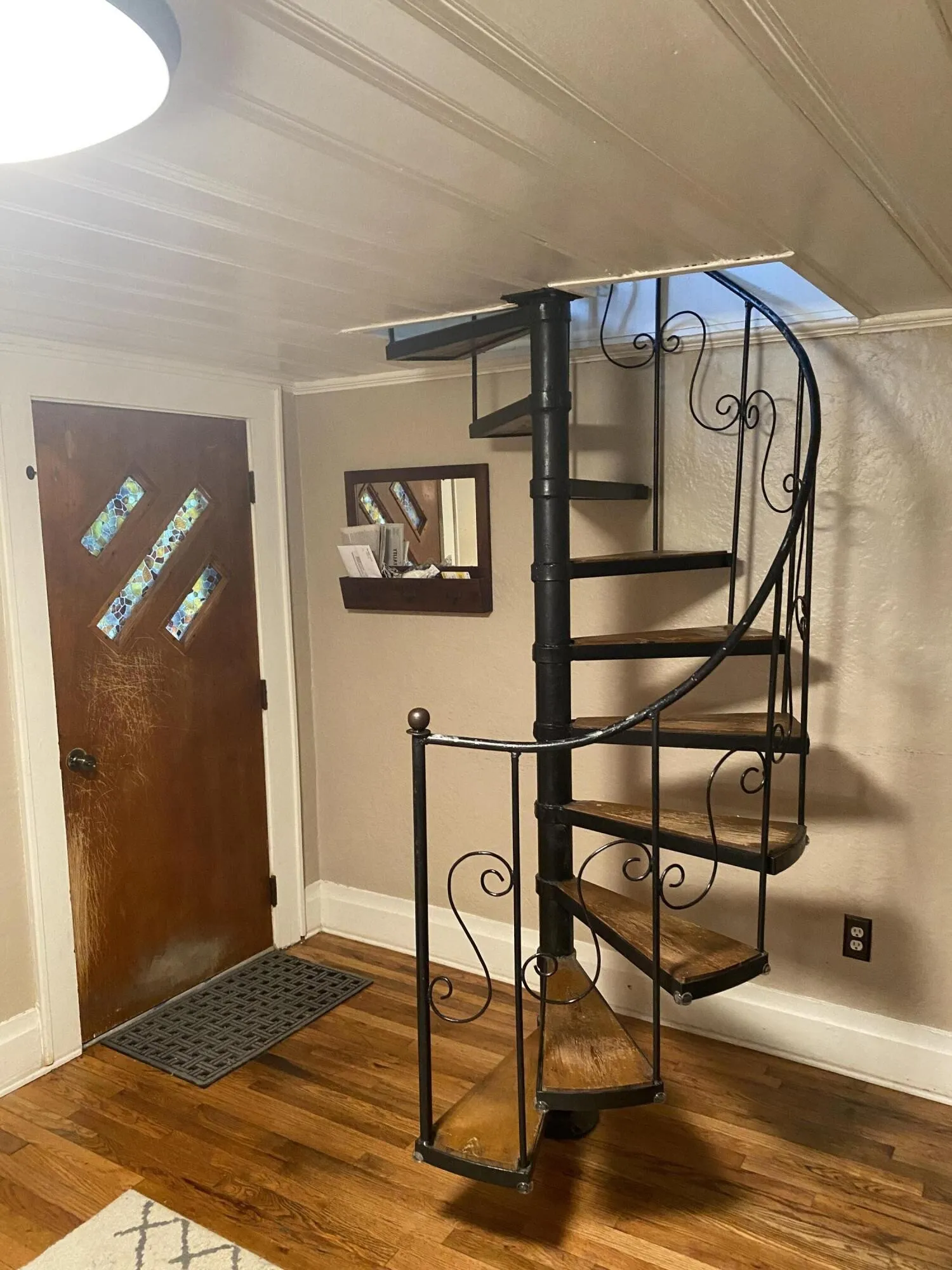 This little house packs a lot of charm in with arched doorways, a spiral staircase, hardwood floors, a very functional small kitchen, and more.