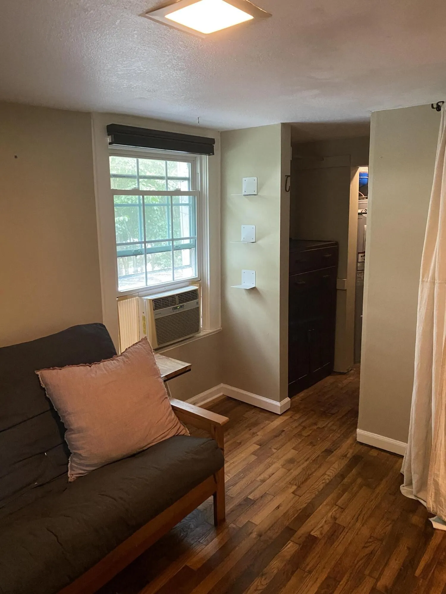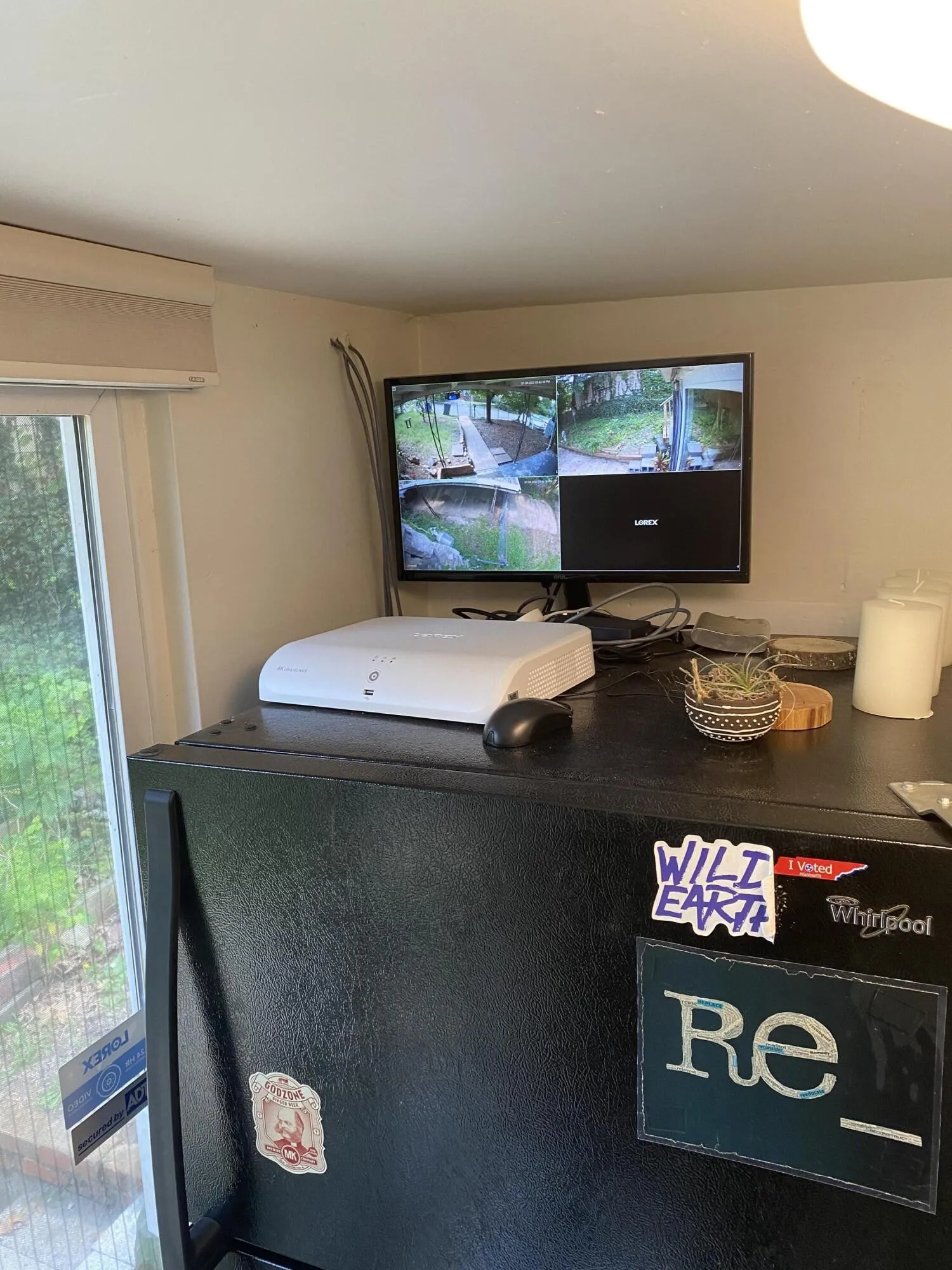 Seller is leaving the recently installed security system for you, as well as the fireplace insert, stove, fridge, and window unit.