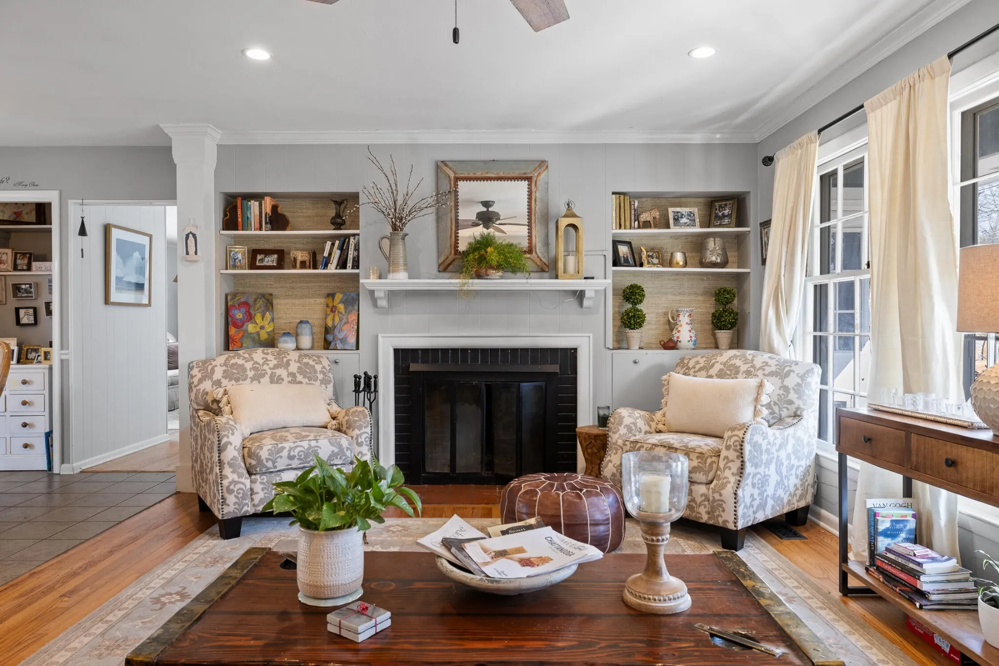 Fireplace Wood Burning, Family Room, Den