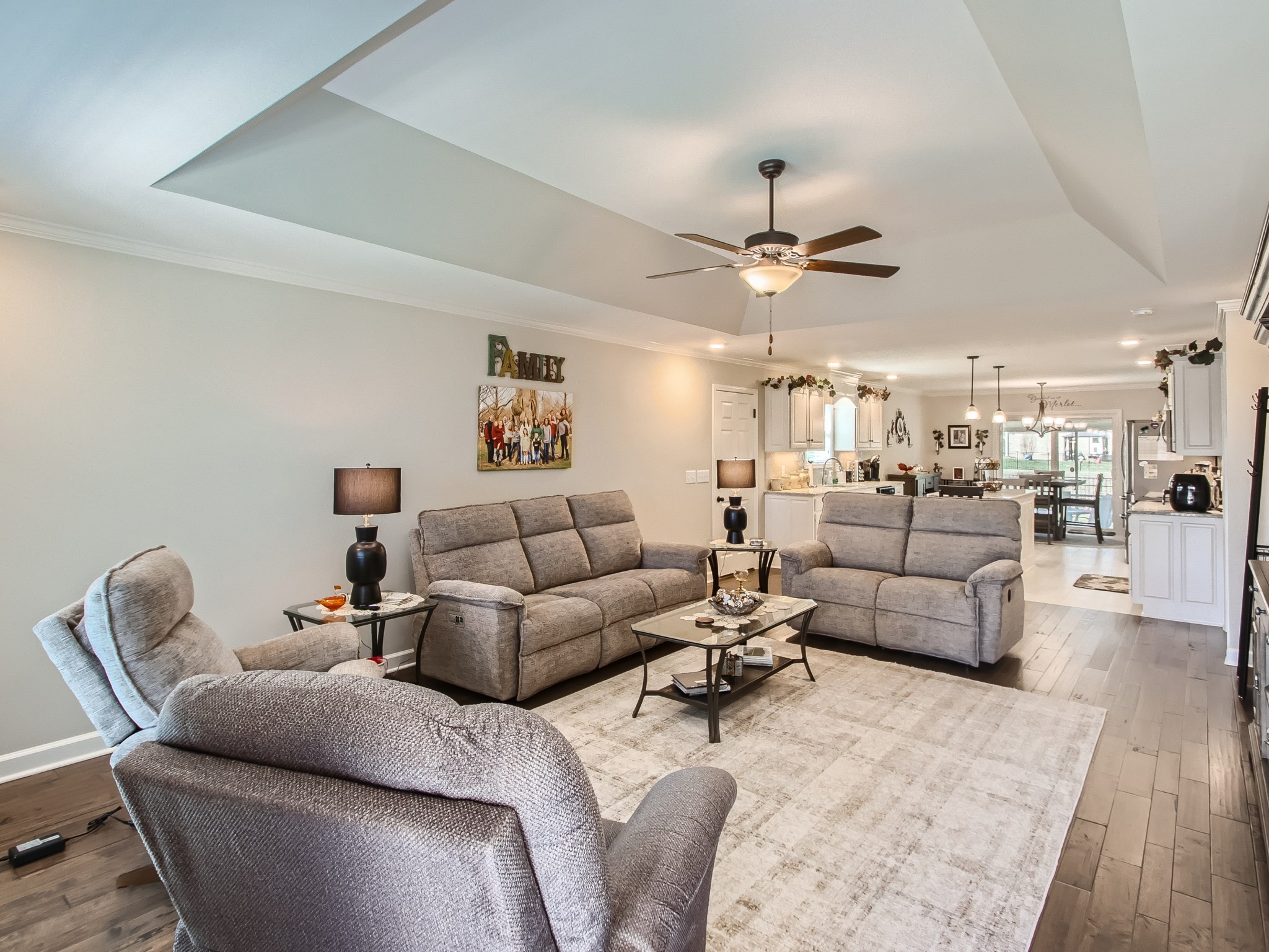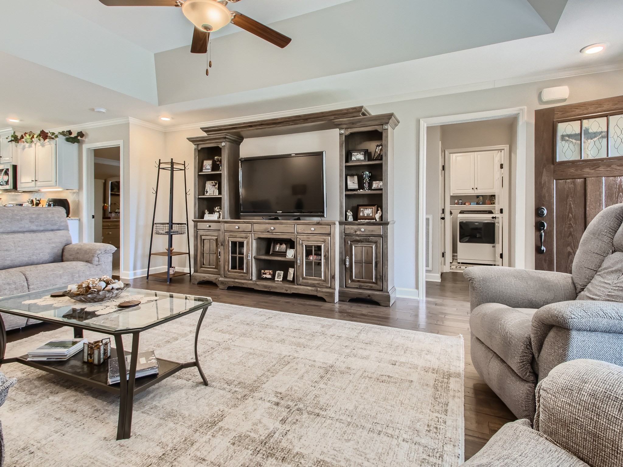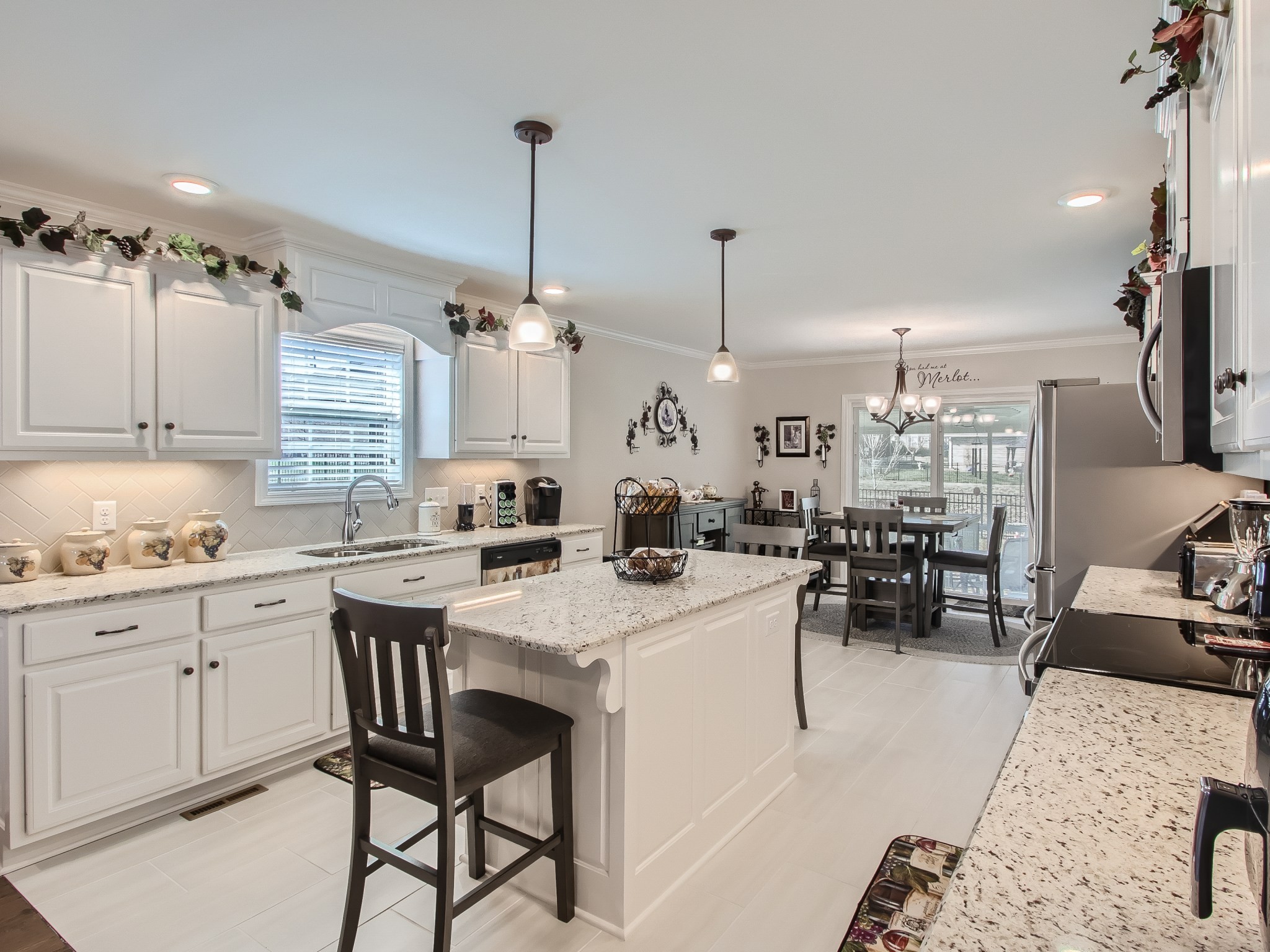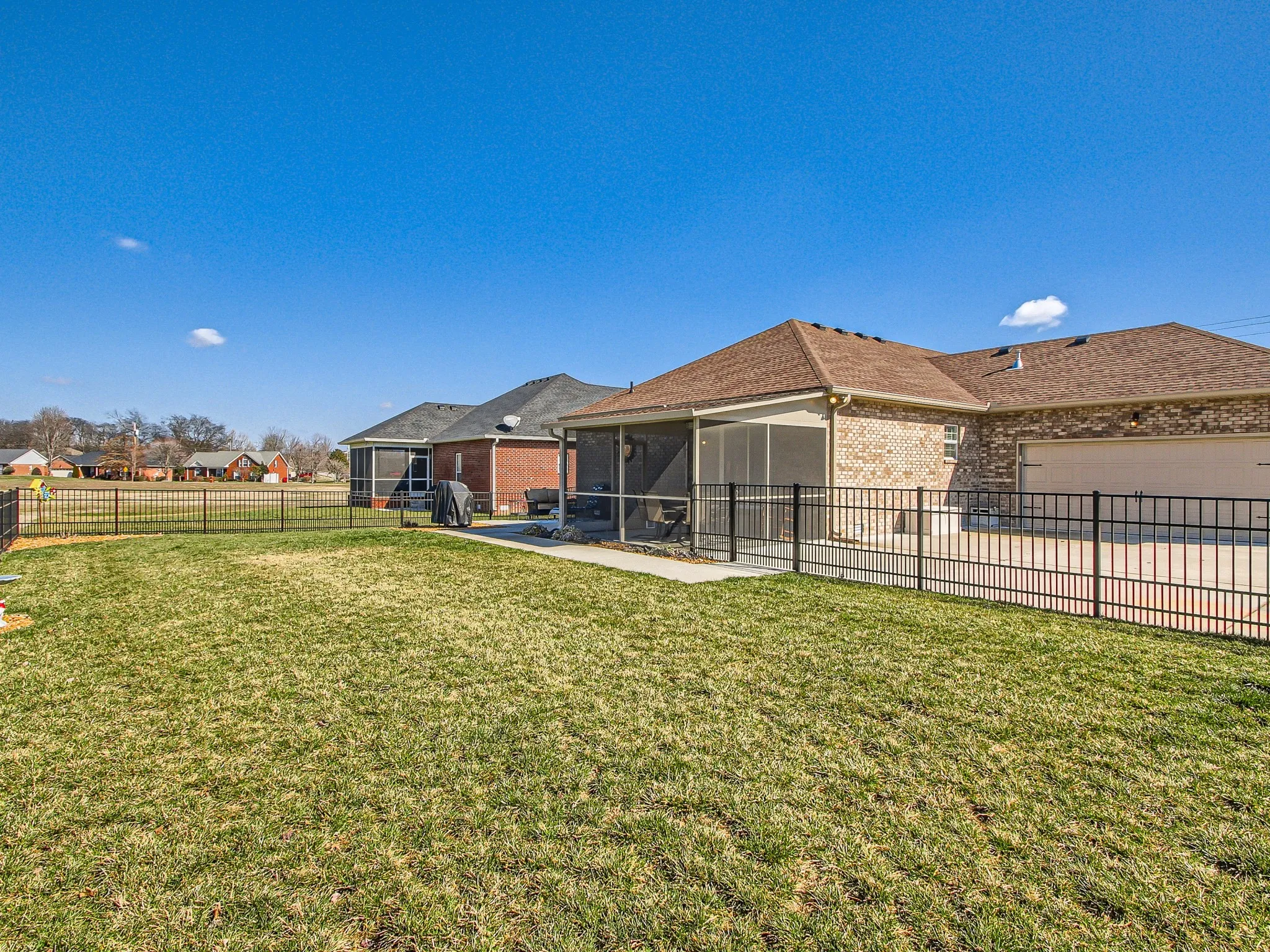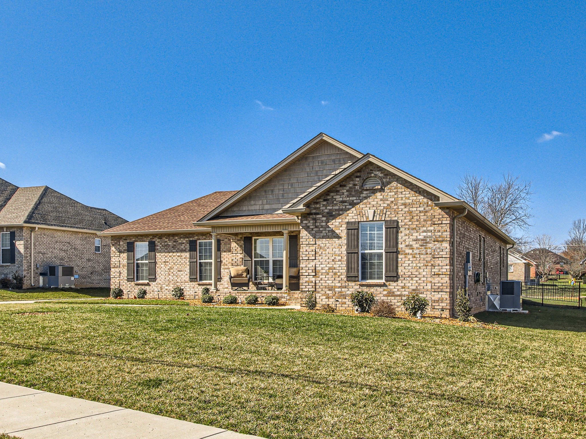 Built in June of 2021, this soon-to-be 3-year-old home has many features. Crown Moulding in the living room, kitchen, dining and master bedroom *Pan ceilings in the living room and master bedroom *Hardwood flooring *Tile in the baths, laundry and kitchen/dining areas *Kit backsplash is subway tile in a hexagon pattern *Large closets *Blinds on all windows *Under counter lighting in kitchen *Kitchen island w/electricity *Many kitchen cabinets *Appliances to stay (new) *Wood shelf & cabinet in the laundry area *6-panel doors throughout *4-sided brick home *Rear load garage with generous amount of parking *Pull down ladder in the garage to the lighted storage area *Large front porch *Nicely landscaped *Stone instead of mulch *Fenced yard *Screened patio with outdoor fan, light and doggie door *Located within the subdivision is a Dog Park, Basketball Court and covered picnic area (with grills) *Agent is owner