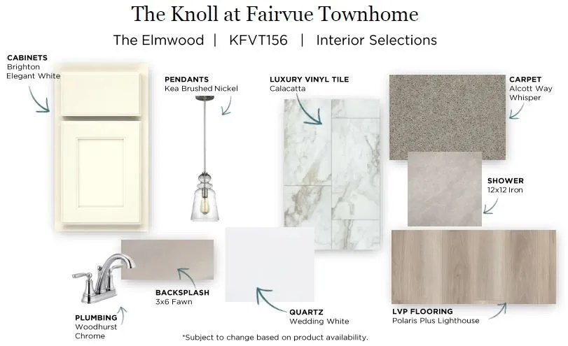 The Elmwood Townhome Floorplan. This two-level, 3 bedroom/2.5 bathroom, END UNIT home offers a beautiful front porch, low maintenance living, and a bright and airy kitchen with upgrades that include white quartz countertops, tile backsplash, and beautiful white cabinets. The Knoll at Fairvue is a perfectly situated community that is walking distance to Publix and dining options. Come visit us today to learn more about this home and community.