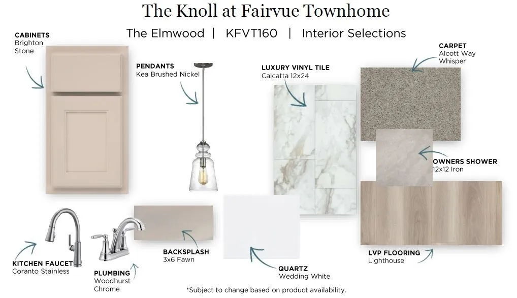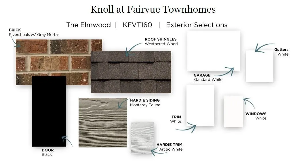 The Elmwood Townhome Floorplan. This two-level, end unit, 3 bedroom/2.5 bathroom home offers a beautiful front porch, low maintenance living, and a bright and airy kitchen with upgrades that include white quartz countertops, tile backsplash, and beautiful gray cabinets. The Knoll at Fairvue is a perfectly situated community that is walking distance to Publix and dining options. Come visit us today to learn more about this home and community.