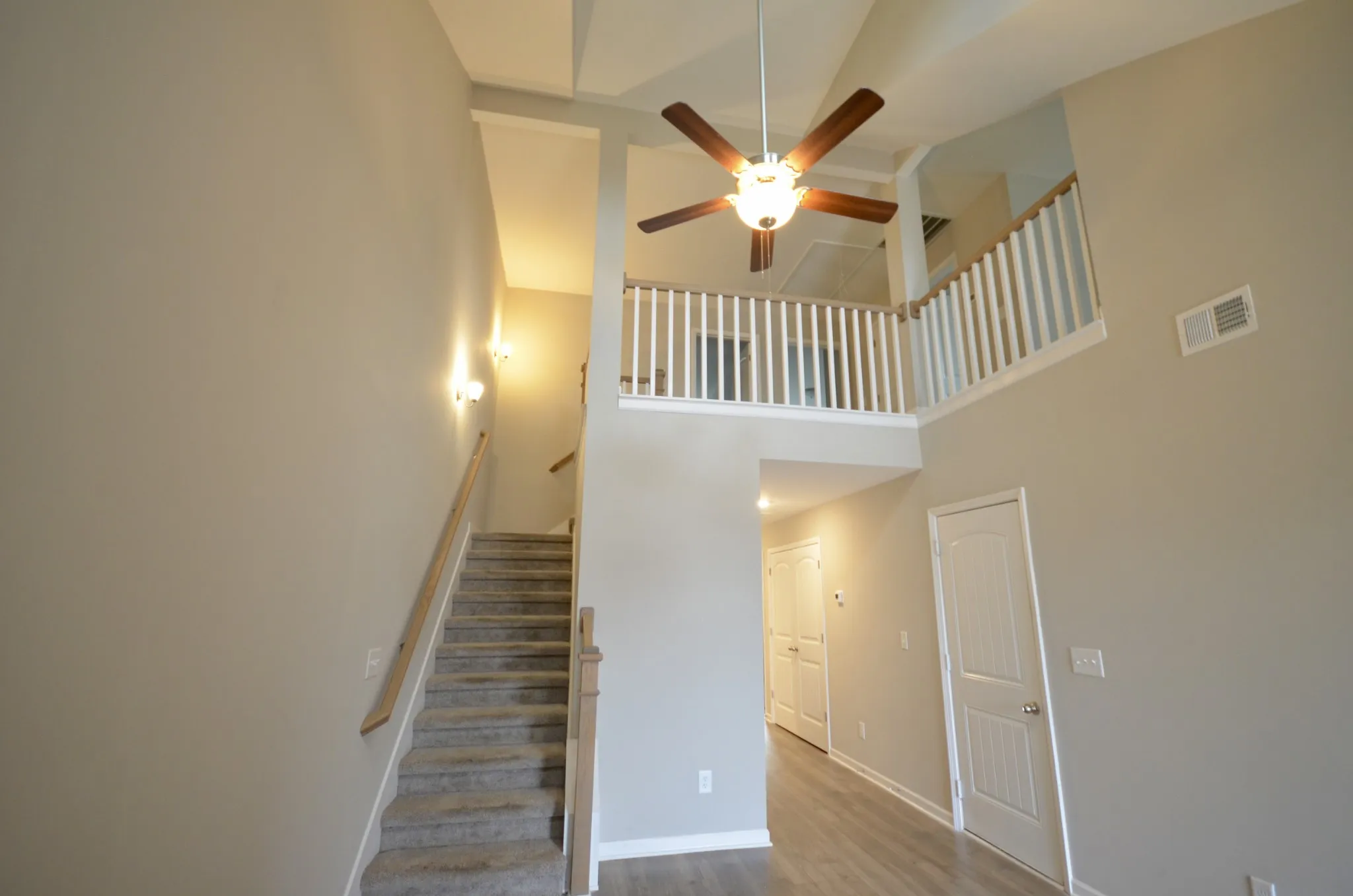 Reduced Price!!! Move in Ready!!! Two story end unit with 3 bedrooms, 2.5 baths and a 1 car garage with plenty of parking out back. Large living room with soaring ceilings open to balcony above. Downstairs primary suite with walk in closet. Eat-in kitchen. Upstairs has 2 bedrooms with large bonus/loft area. Large front and back porches. Kitchen has granite countertops and stainless steel appliances.