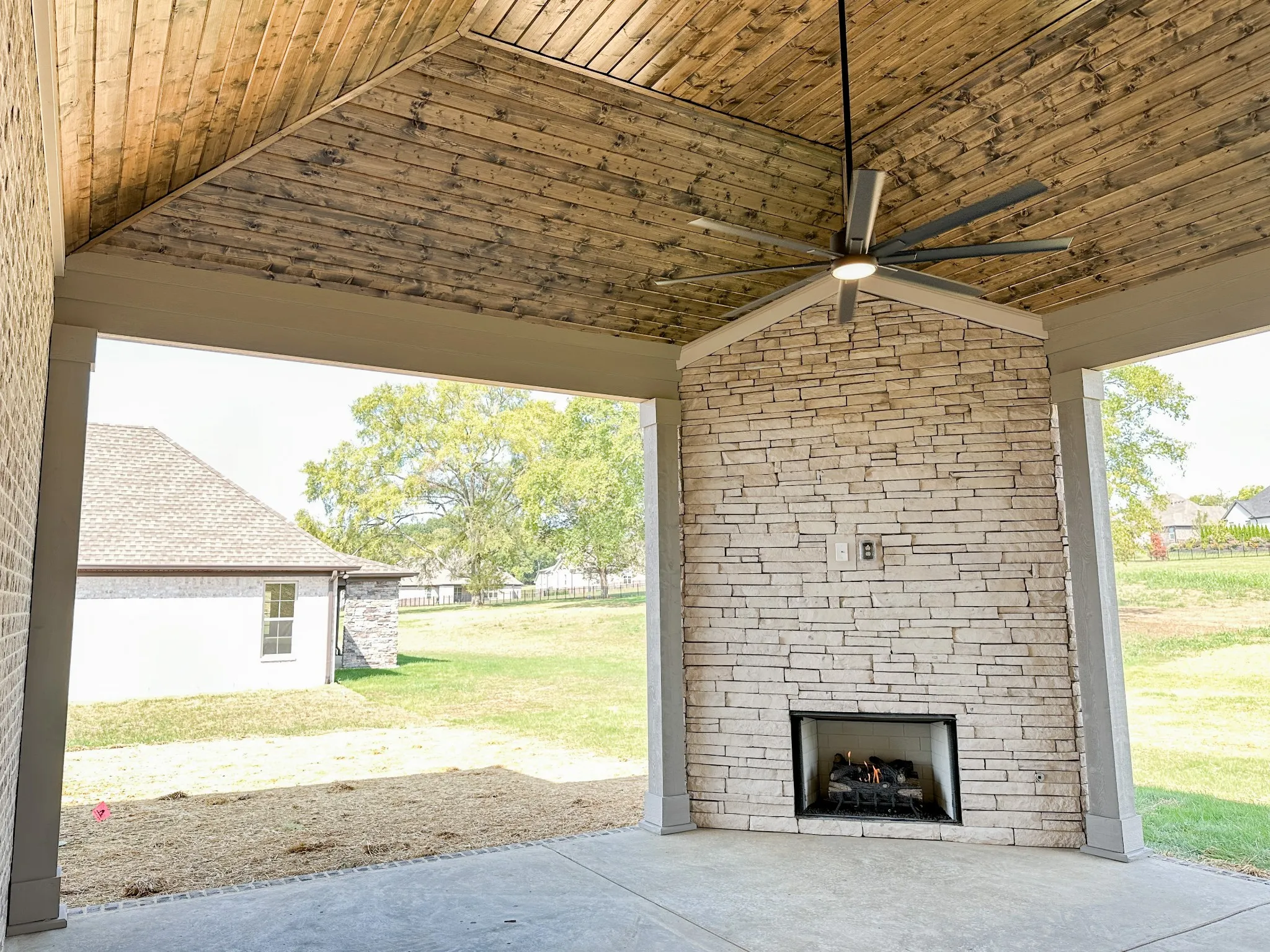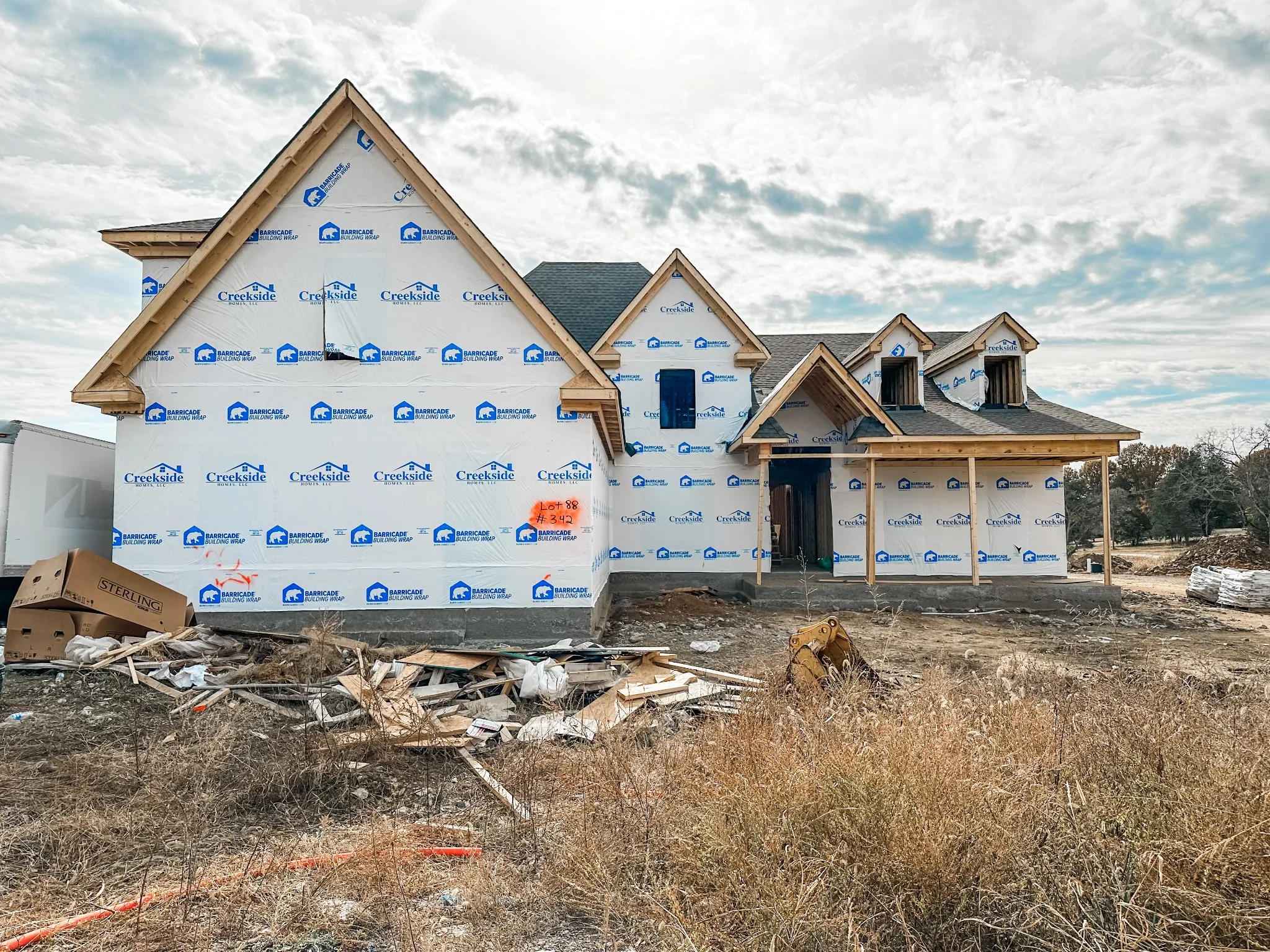 Kensington Plan by Creekside Homes. Come make your own selections! 3 Beds down, 2 Bedrooms Up. 3 Car Garage. Loaded with upgrades – Huge kitchen with double ovens, 36″ gas cooktop, quartz countertops, wood shelving in pantry and master closets. Enjoy the beautiful covered back porch gas fireplace with a stained beadboard ceiling. Come make your own selections! Estimated completion end of February/early March 2024.