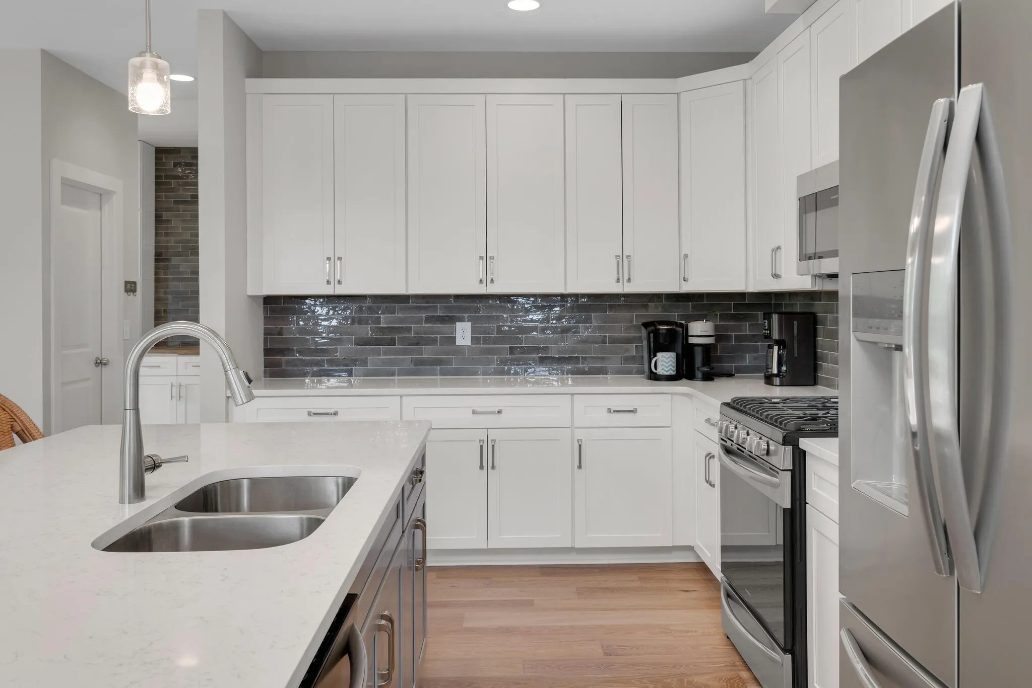 Welcome to your stunning modern new build home, where luxury meets comfort. This exquisite four-bedroom, three-full-bathroom residence boasts incredible windows that flood the home with natural light, offering breathtaking views of the lush backyard. Perfect for summer nights with family or friends, the spacious layout and seamless indoor-outdoor flow make it ideal for entertaining and creating lasting memories. Crafted with meticulous attention to detail, the builder spared no expense in using higher quality materials than typically found in new construction homes, ensuring durability and a timeless appeal. The contemporary style of the home stands out elegantly, making a striking impression as you pass by. Experience the epitome of modern living in this exceptional home, where every detail has been thoughtfully curated to provide the ultimate in comfort, style, and functionality. Don’t miss the opportunity to make this architectural masterpiece your own.