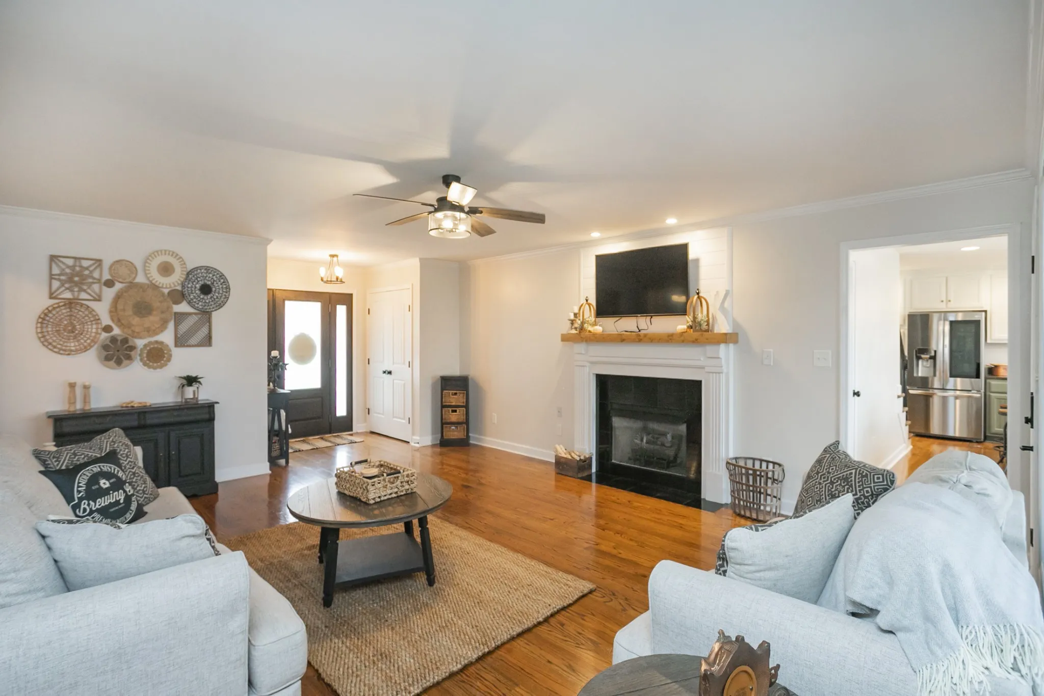 Welcome to the charming Twin Eagles community in Gallatin, TN. Step inside & be greeted by the inviting interior features of …gleaming hardwoods, granite, new carpet, fresh paint, shiplap, ceilings w/wood feature, tile & more! This beautiful home has a spacious layout including a living room w/cozy fireplace, a dream kitchen w/all new appliances and convenient walk in pantry. The 3 bedrooms are generously sized, w/ the primary bedroom featuring a vaulted ceiling, soaking tub w/shower & 3 closets! Bonus room features new carpet & skylights to enjoy a touch of natural sunshine or the evening stars. Bonus room also has a large walk in storage area for all those holiday items. The large laundry room makes laundry day a breeze, offering plenty of natural light, clothes bar & cabinet storage. Outside, enjoy the covered front porch w/ new door & sidelights, screened back porch, patio w/ firepit, fenced back yard w/ 2 gates and fresh landscaping. New roof installed October of 2023.
