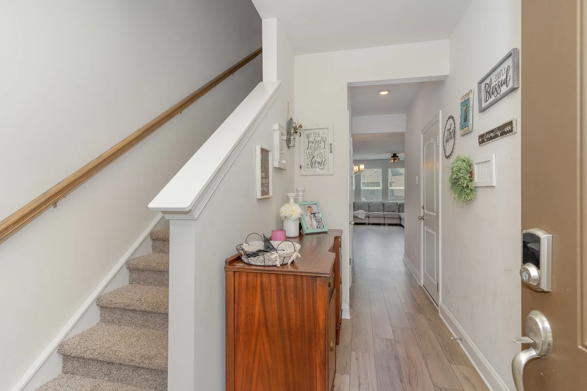 Beautiful, well-loved home taken care of meticulously by owner. The Beckett’s welcoming foyer leads into the open-concept living area and kitchen. Upstairs, the primary suite offers dual sinks. White cabinets with Chipped Ice Quartz countertops, Driftwood EVP flooring with carpet come in our Balanced package. Newmans Crossing is conveniently located near shopping, dining, and less than a mile from top-rated Station Camp schools.