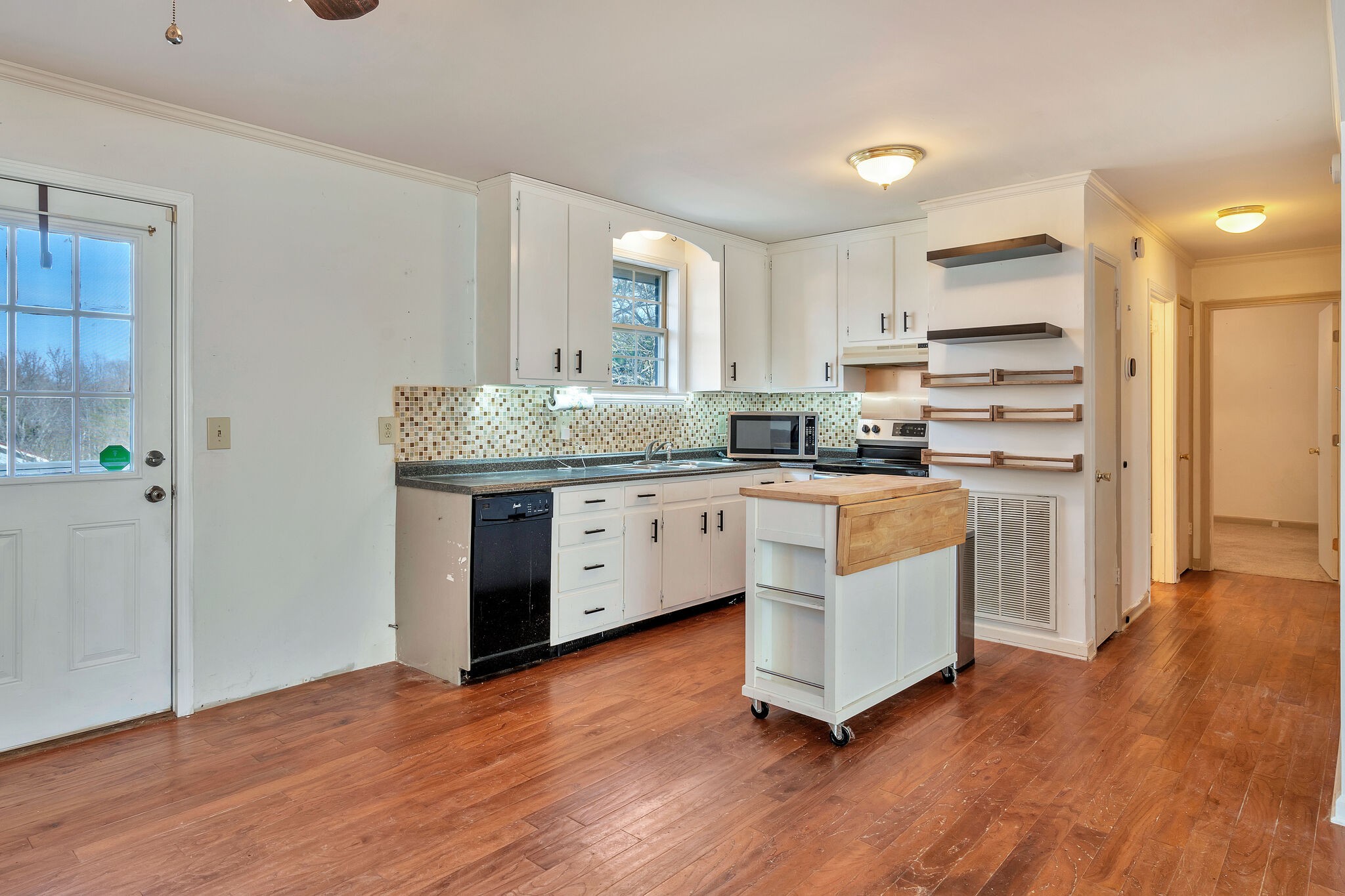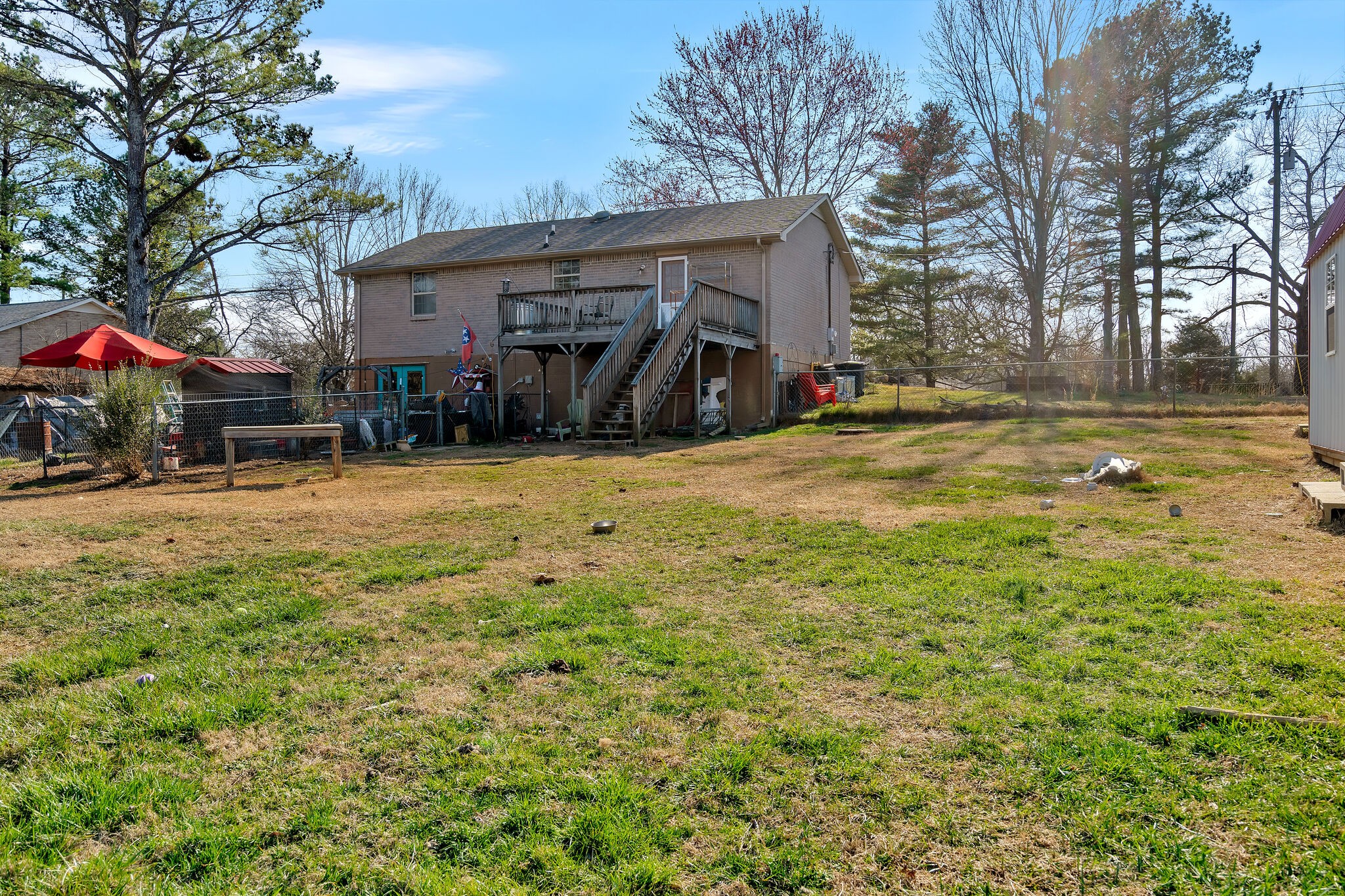 One of the best buys in Fairview and Williamson County. 4BR/2BA (3/1 main & 1/1 basement). Great starter home with lots of storage. Beautiful yard front and back with lots of flowers popping up, blueberry bushes, apple trees and more. One newer model storage building remains (gray roof)..the other is being rented and will be removed in a week or so. Attached one-car garage in the basement faces back yard.
