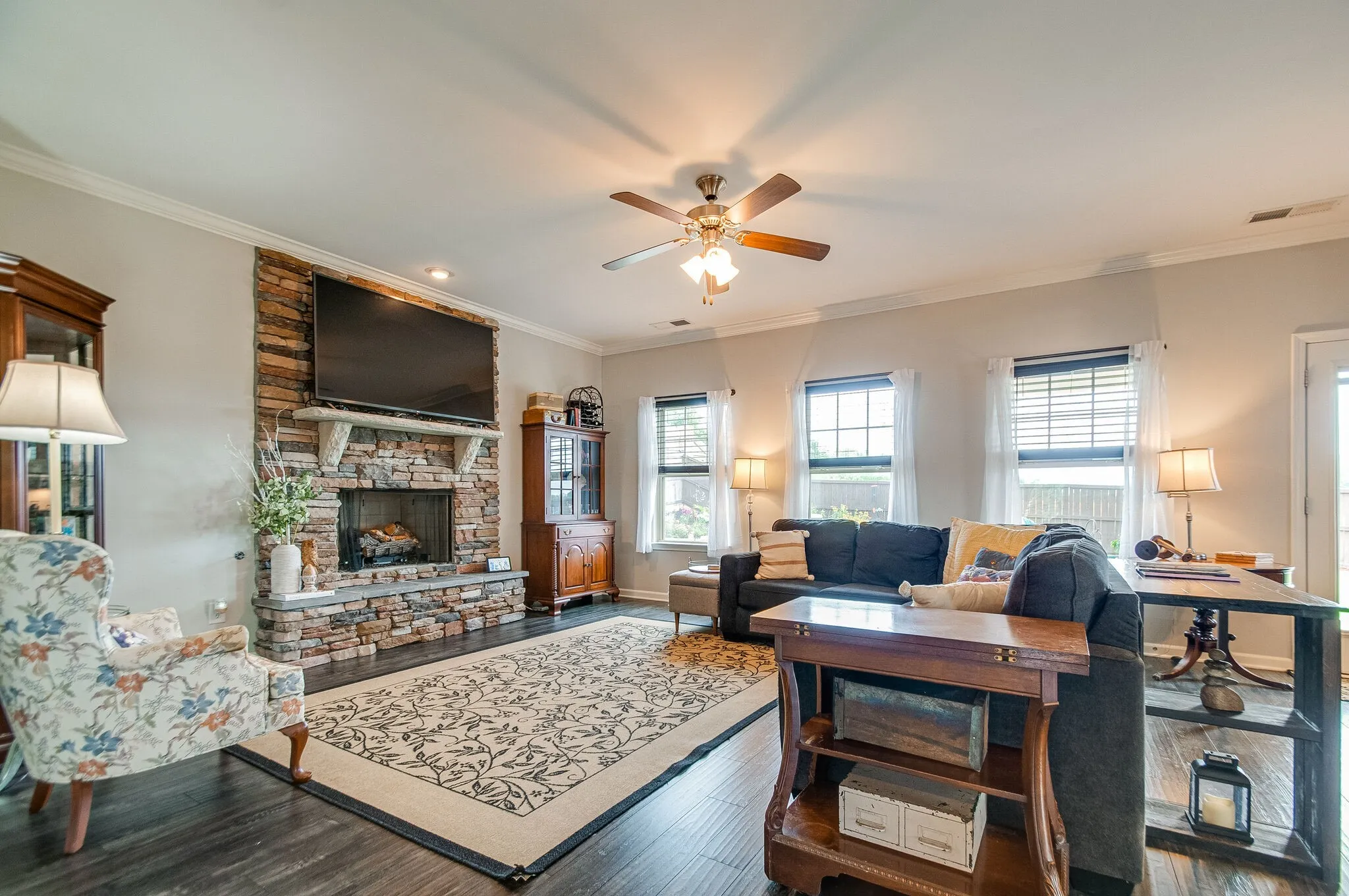 Move-in ready home located in Cumberland Estates – Fairview’s most sought after neighborhood! Zoned for highly-rated Williamson County schools. Conveniently located 1 mile to elementary, middle and high schools. Drop off & pick up just minutes down the street. All the space you’ll need – featuring 4 bedrooms, 2.5 bathrooms, bonus room, private office & attached 2 car garage. Upgrades include: added french doors to dining area to create private office, premium oversized corner lot, side entry garage, covered rear porch, stacked stone fireplace w/ gas logs, under cabinet lights & gas stove. Kitchen finishes include granite counters, stainless steel appliances & pantry. Open concept living downstairs. All bedrooms & bonus room are upstairs. Fully-fenced backyard w/ custom garden/flower area.