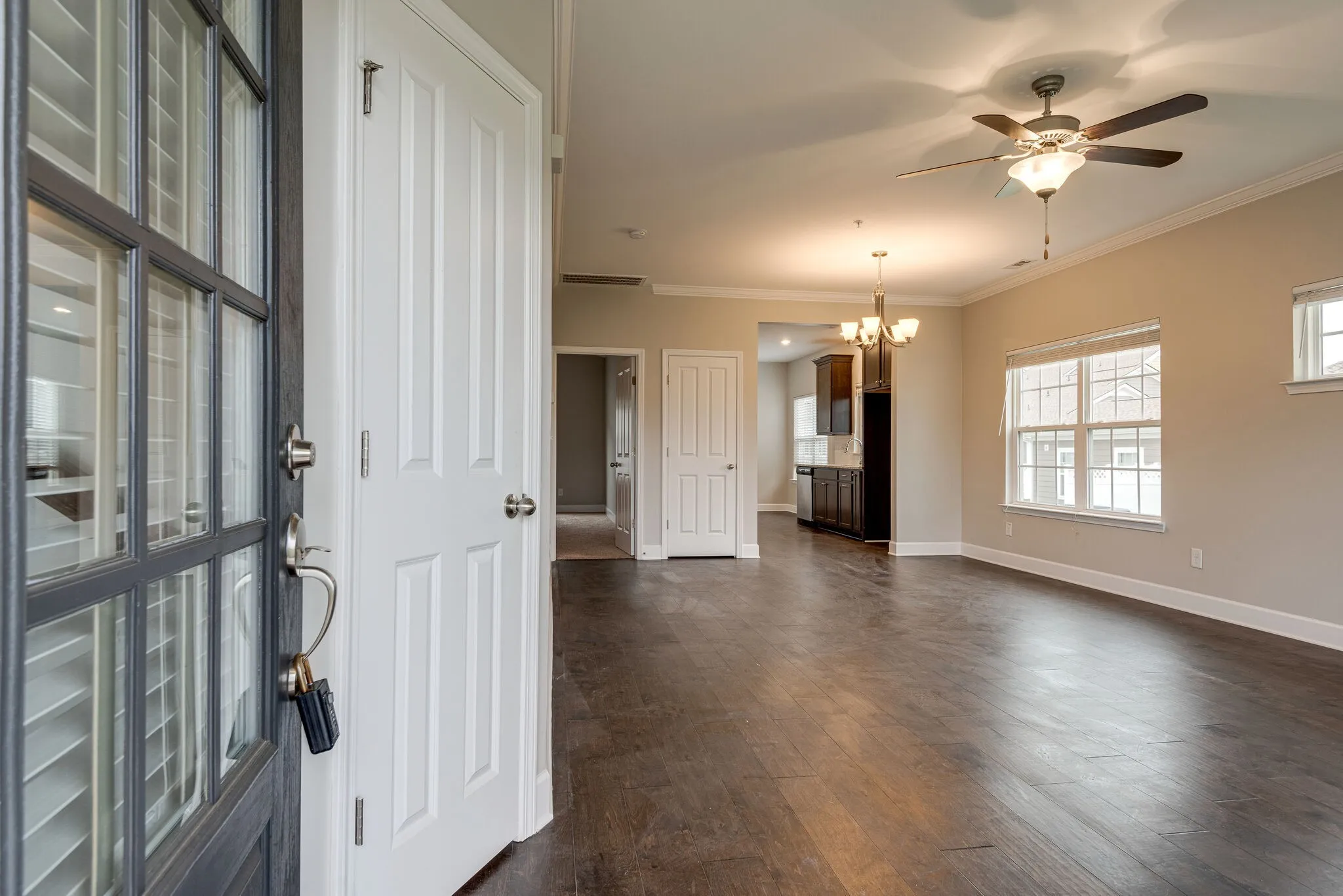 Impeccable Corner Unit. 3 Bedrooms, 3 Baths, 2 Car Garage Townhome Loaded with upgrades, Open Floor Plan with lots of Natural Light, Fresh Paint, Better than NEW, Master Suite Down, 2 Br up w/ Loft for play area or office! Fenced Courtyard and much more!. Convenient Location, Minutes from Shopping, Groceries and Restaurants Easy access to I-65 and I-840. Luxurious Kitchen with Granite and backsplash, stainless appliances, Modern low maintenance flooring. Rent includes HOA fees