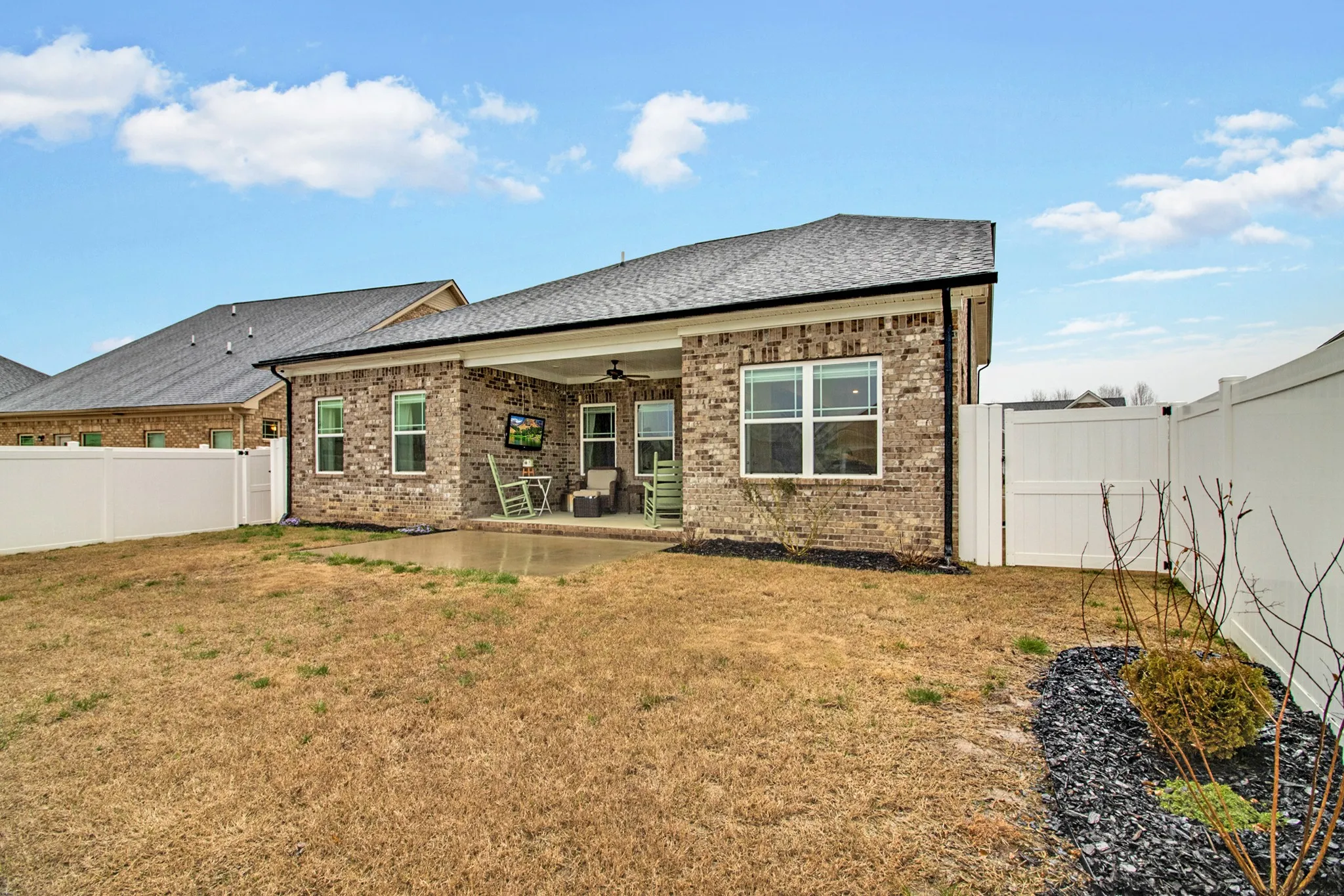 Like NEW CONSTRUCTION but better! Built August 2021, fenced in backyard, 3 bedroom, 3 full bathroom, massive bonus living area upstairs. Located conveniently near front of neighborhood with extra long driveway and no visible power lines. Owners sodded back and side yards ($8,000) with Bermuda grass and added magnolia, pine, and willow trees. Back covered porch area is ideally situated with three walls and a mount for an outdoor TV. Carpet removed and luxury vinyl plank flooring installed in secondary bedrooms. Blinds installed on all windows. Fixtures in master bath have been upgraded from construction grade to custom look. Slow close cabinets, granite, stainless appliances in kitchen. Nest thermostat upgrade. Washer and dryer do not convey. Home security system including sensors and cameras do not convey. Buyer to verify all information and measurements before making an informed offer.