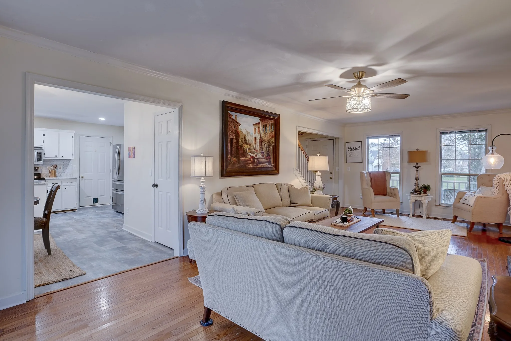Gorgeous Williamson County renovated home for sale! This 3 BR 2.5 BA home features hardwood floors in the living room, dining room, rec room, and all bedrooms (no carpeting), granite countertops, stainless steel appliances, and a fireplace in the living room. The spacious primary suite has large walk-in closets, shower, and soaking tub. Laundry is conveniently located upstairs with the bedrooms. The new roof has a transferable warranty. A large backyard is great for entertainment. Fabulous neighborhood with Independence High School, which is rated 10/10. Longtime homeowner is relocating. Don’t miss out on this stunning home in a walkable, family-friendly neighborhood in Williamson County. Buyer/agent to verify all pertinent information.