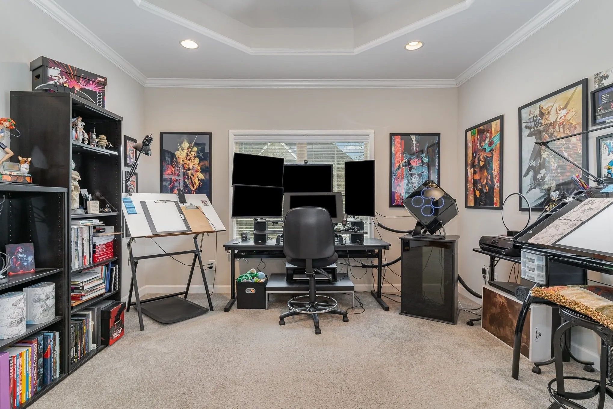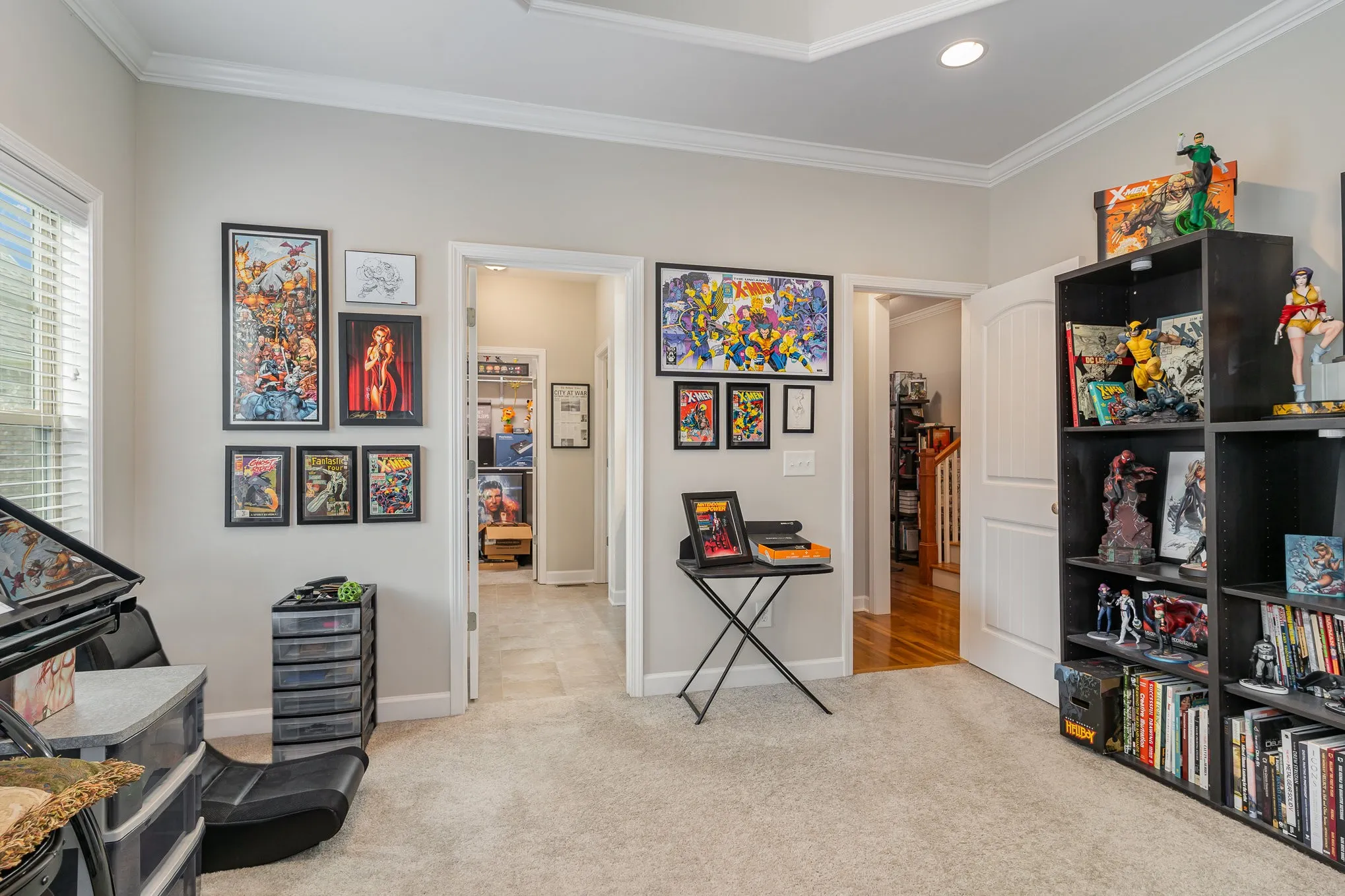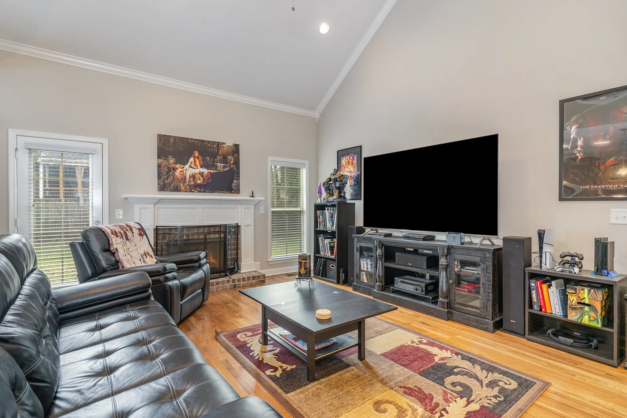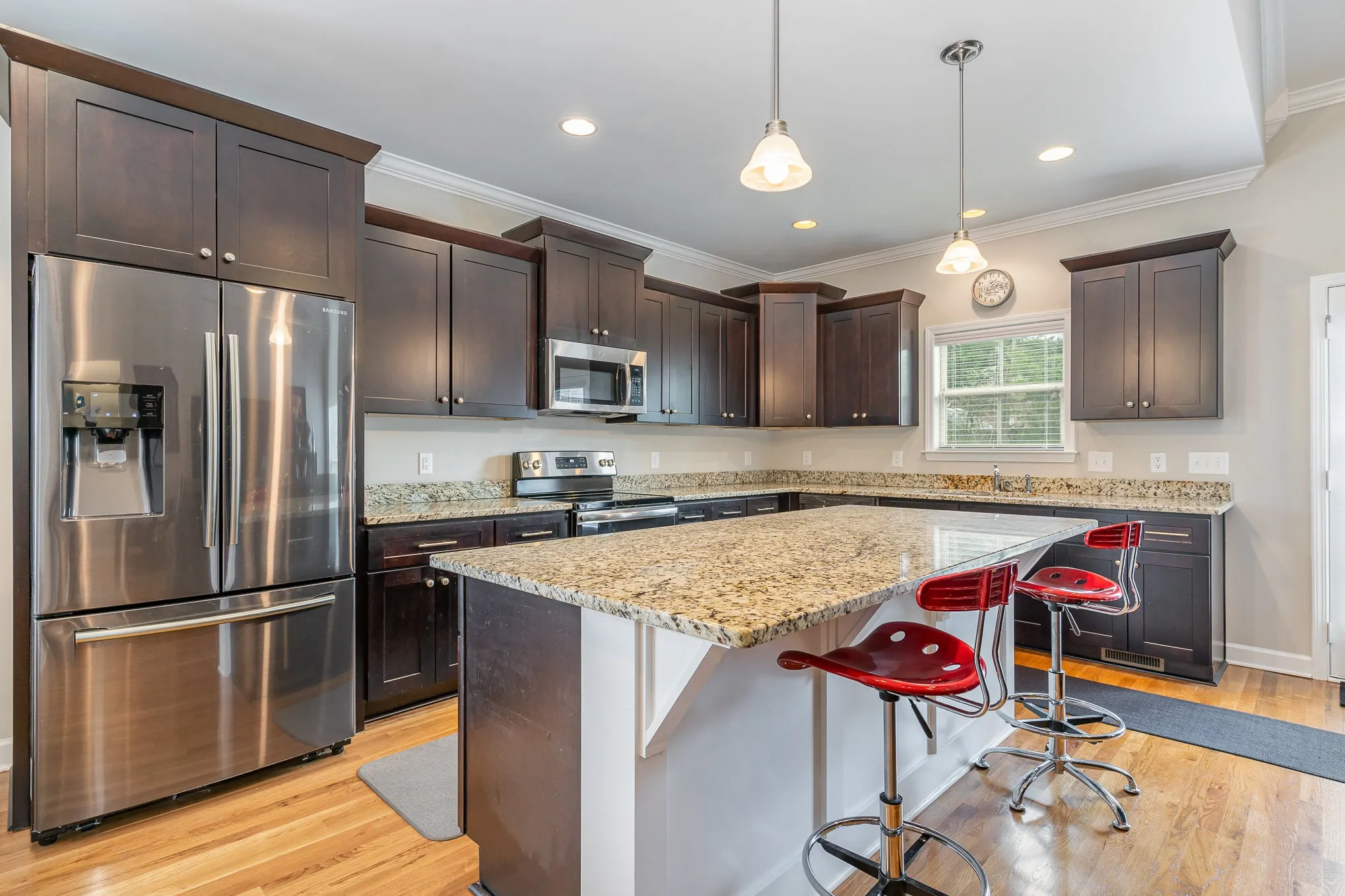 Beautifully appointed executive home with gleaming sand and finish hardwood floors, high vaulted ceilings, granite counters, custom cabinetry with soft close technology, primary and additional bedroom downstairs, spacious bedrooms and bonus room upstairs, meticulously maintained
