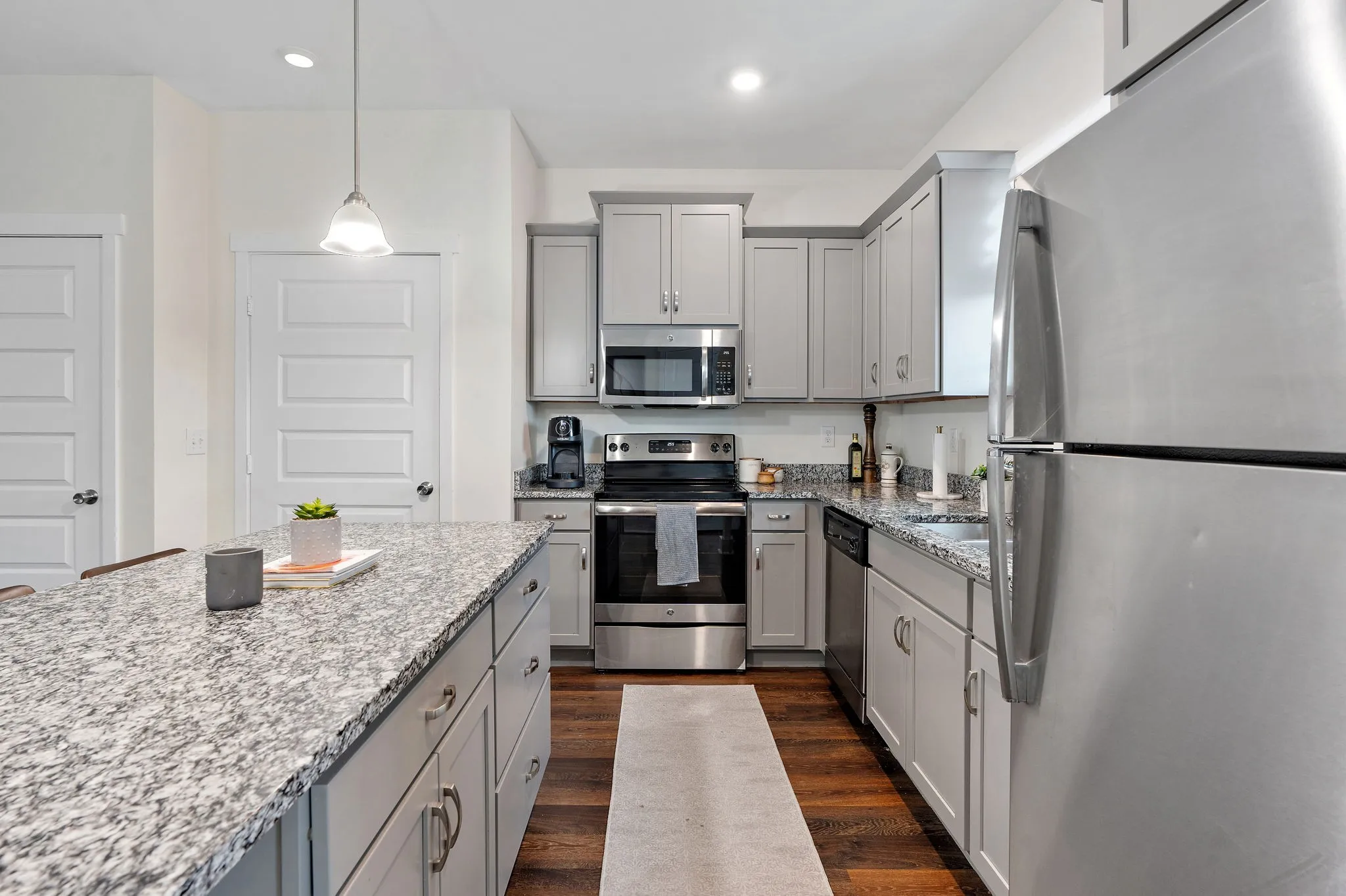 Welcome to this beautiful townhome at 4000 Currant Ct. This townhome features an open concept with tons of natural light. Great for entertaining! Kitchen includes modern features such as stainless-steel appliances and beautiful granite counter tops. The downstairs also features brand new, scratch resistant vinyl flooring. Upstairs features two bedrooms and two full baths. Included in this home is a brand-new LG washer and dryer. This unit has been very well maintained. You do not want to miss out on this luxury unit! Amenities in development include: pool, weight room, and more.