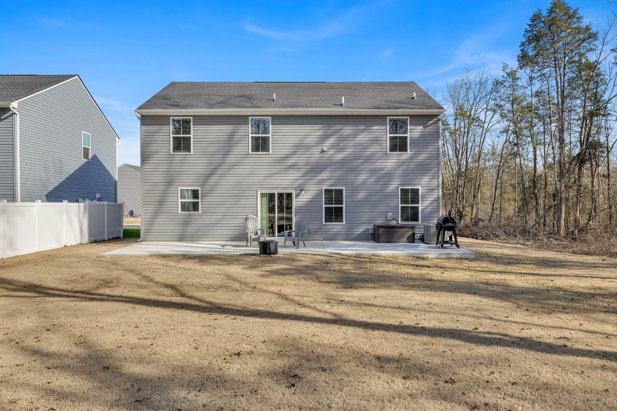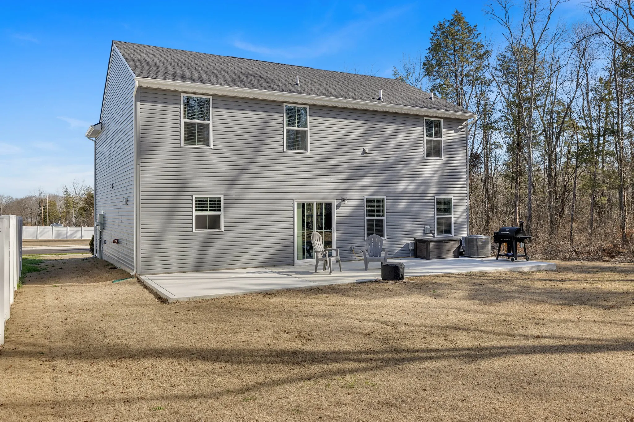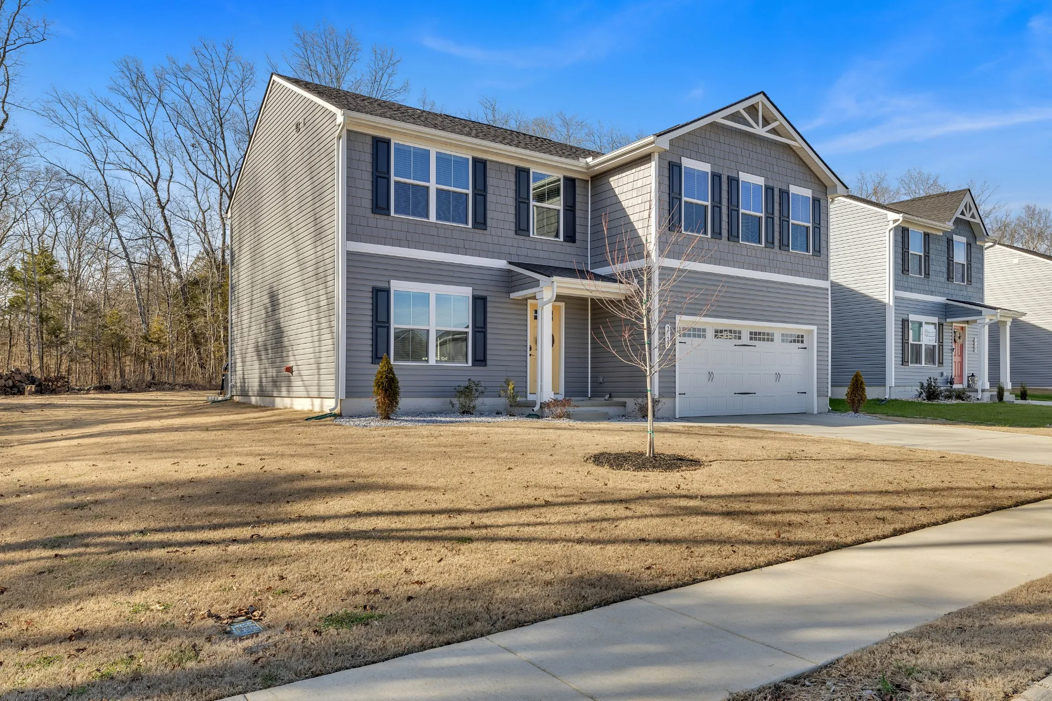 Step inside this practically brand-new home to discover a spacious and inviting Large Family Room, perfect for relaxing or entertaining. The kitchen features upgraded pantry shelving and soft-close cabinet doors, enhancing both functionality and style. This exceptional home is built on a premium lot, offering privacy and tranquility with its wooded surroundings. The home has upgraded blinds and has been professionally painted, adding a touch of elegance throughout. Enjoy outdoor living at its best with the upgraded extra-large patio, ideal cooking out or simply soaking in the tree-lined back yard. Don’t miss out on the opportunity to make this remarkable home yours! Conveniently located less than 5 minutes from I-65 at Bear Creek Pike, this home offers easy access to commuting routes while still providing a peaceful retreat. The beautiful landscaping completes the picture-perfect setting of this stunning property.