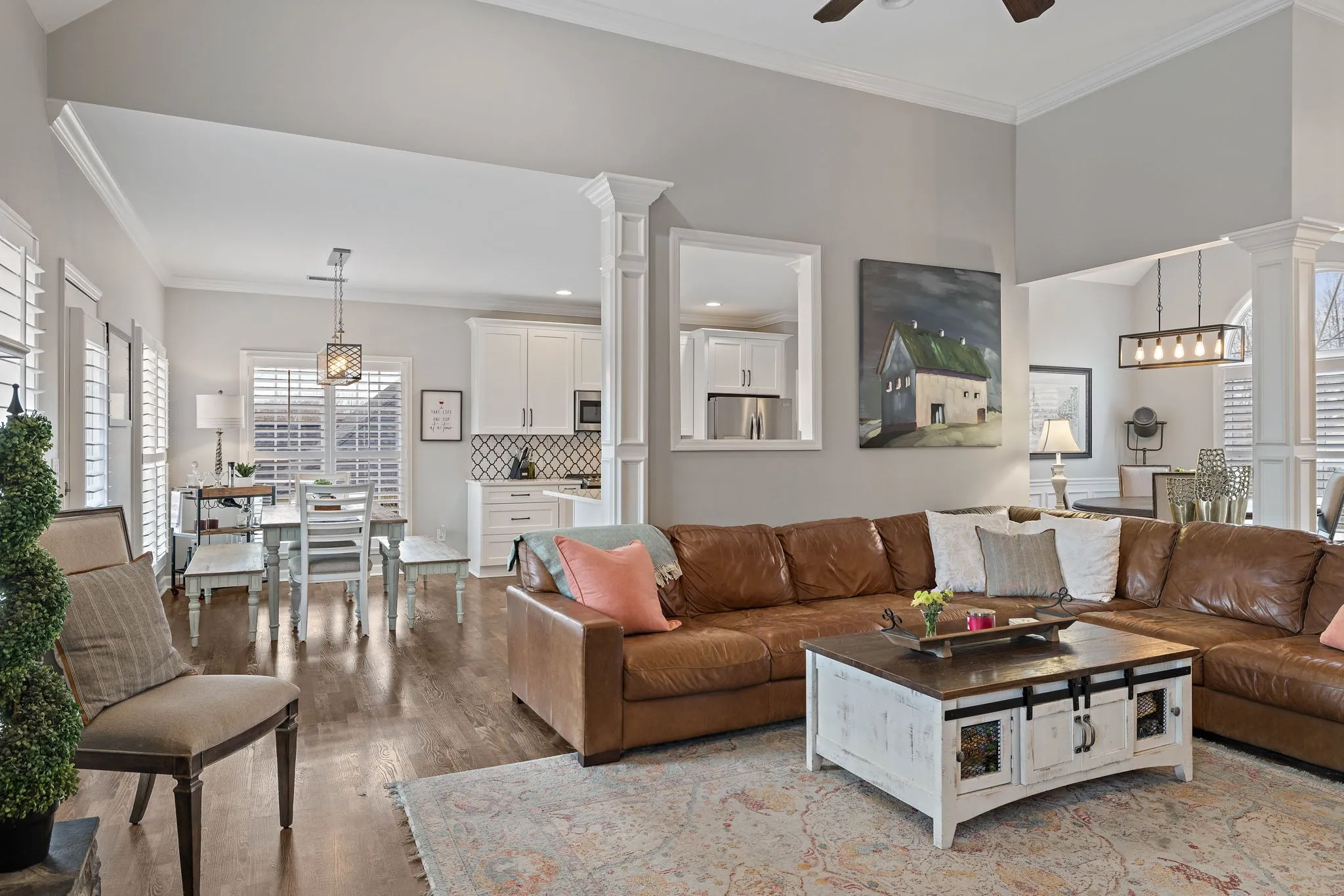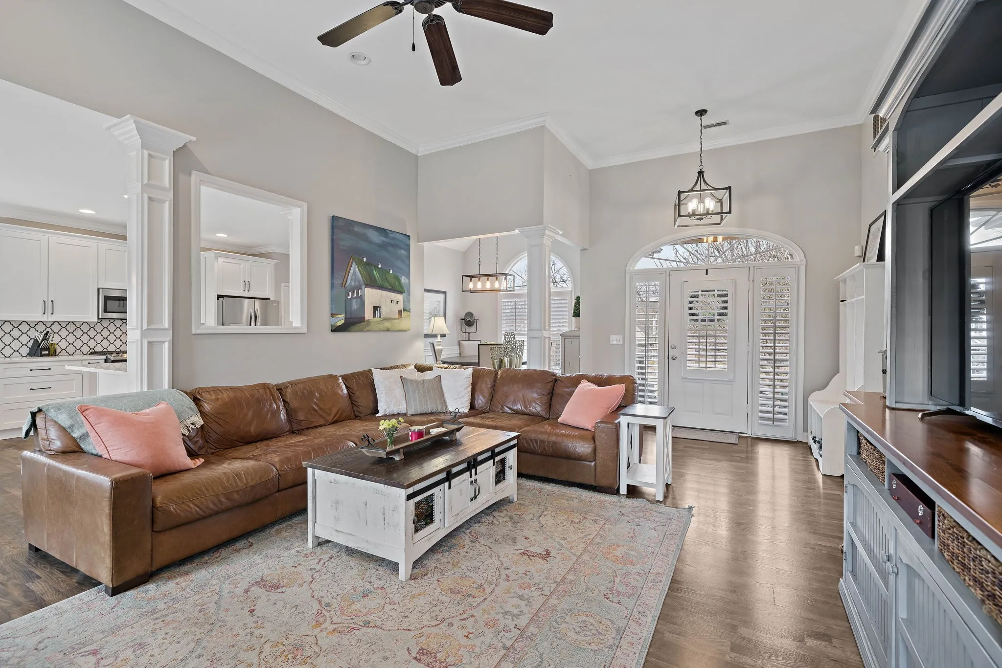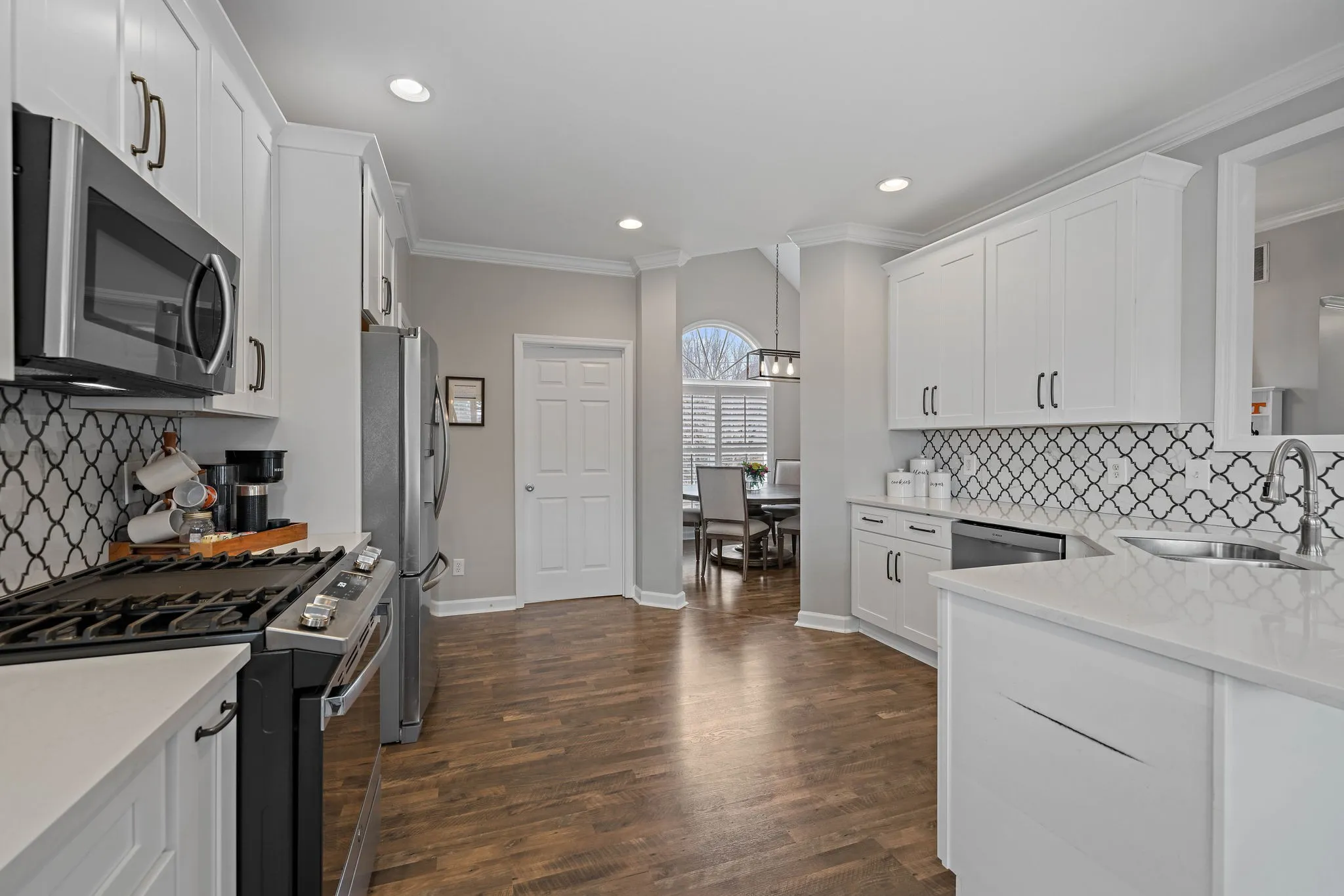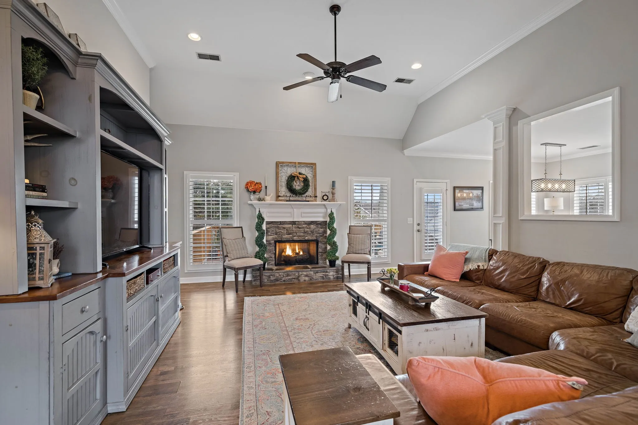 This beautiful 4 bedroom, 4 bathroom home in the Crowne Pointe community, in Thompsons Station, has been recently renovated and is beautiful. Recent renovations include: new laminate floors on main level, new kitchen cabinets, new stunning tile backsplash and quartz countertops, new kitchen appliances and plantation shutters. Roof is 2.5 yrs old. Primary on main! The bathroom in the primary suite also been updated with a new, large tiled shower, new tile floors, new cabinets, new quartz countertops and custom built-ins in the primary suite closet. Upstairs will you find a bedroom with full bathroom. Downstairs has a large open living/bonus room, that’s currently being used as an office and living room. Downstairs also has a full bathroom, and 2 large storage rooms that are heated and cooled. Storage galore in this home! The large fenced in back yard is ideal for entertaining and relaxing. It also comes with a 2 story deck that is amazing! Make plans to see this one in person!!