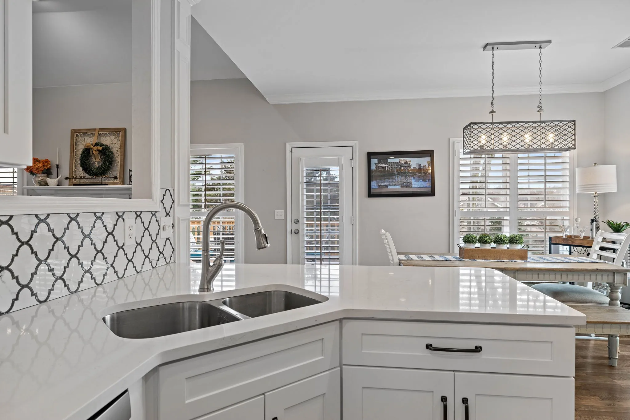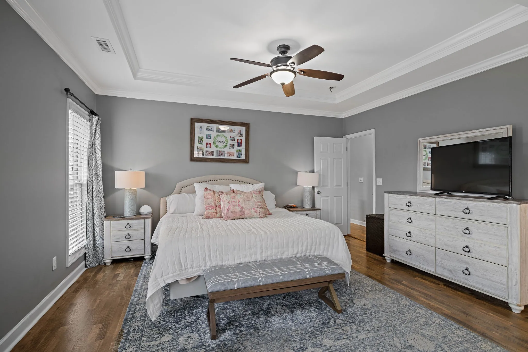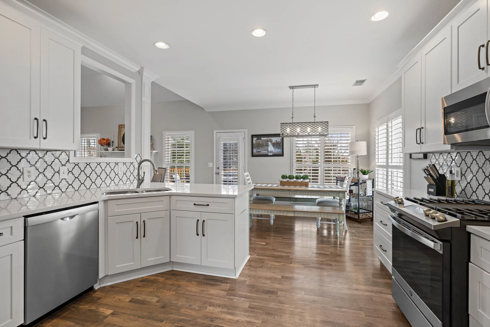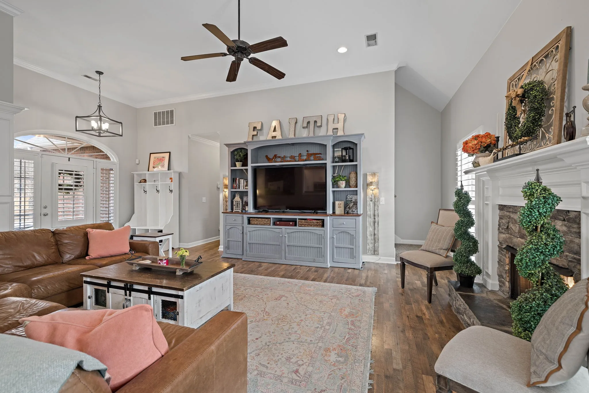 This beautiful 4 bedroom, 4 bathroom home in the Crowne Pointe community, in Thompsons Station, has been recently renovated and is beautiful. Recent renovations include: new laminate floors on main level, new kitchen cabinets, new stunning tile backsplash and quartz countertops, new kitchen appliances and plantation shutters. Roof is 2.5 yrs old. Primary on main! The bathroom in the primary suite also been updated with a new, large tiled shower, new tile floors, new cabinets, new quartz countertops and custom built-ins in the primary suite closet. Upstairs will you find a bedroom with full bathroom. Downstairs has a large open living/bonus room, that’s currently being used as an office and living room. Downstairs also has a full bathroom, and 2 large storage rooms that are heated and cooled. Storage galore in this home! The large fenced in back yard is ideal for entertaining and relaxing. It also comes with a 2 story deck that is amazing! Make plans to see this one in person!!