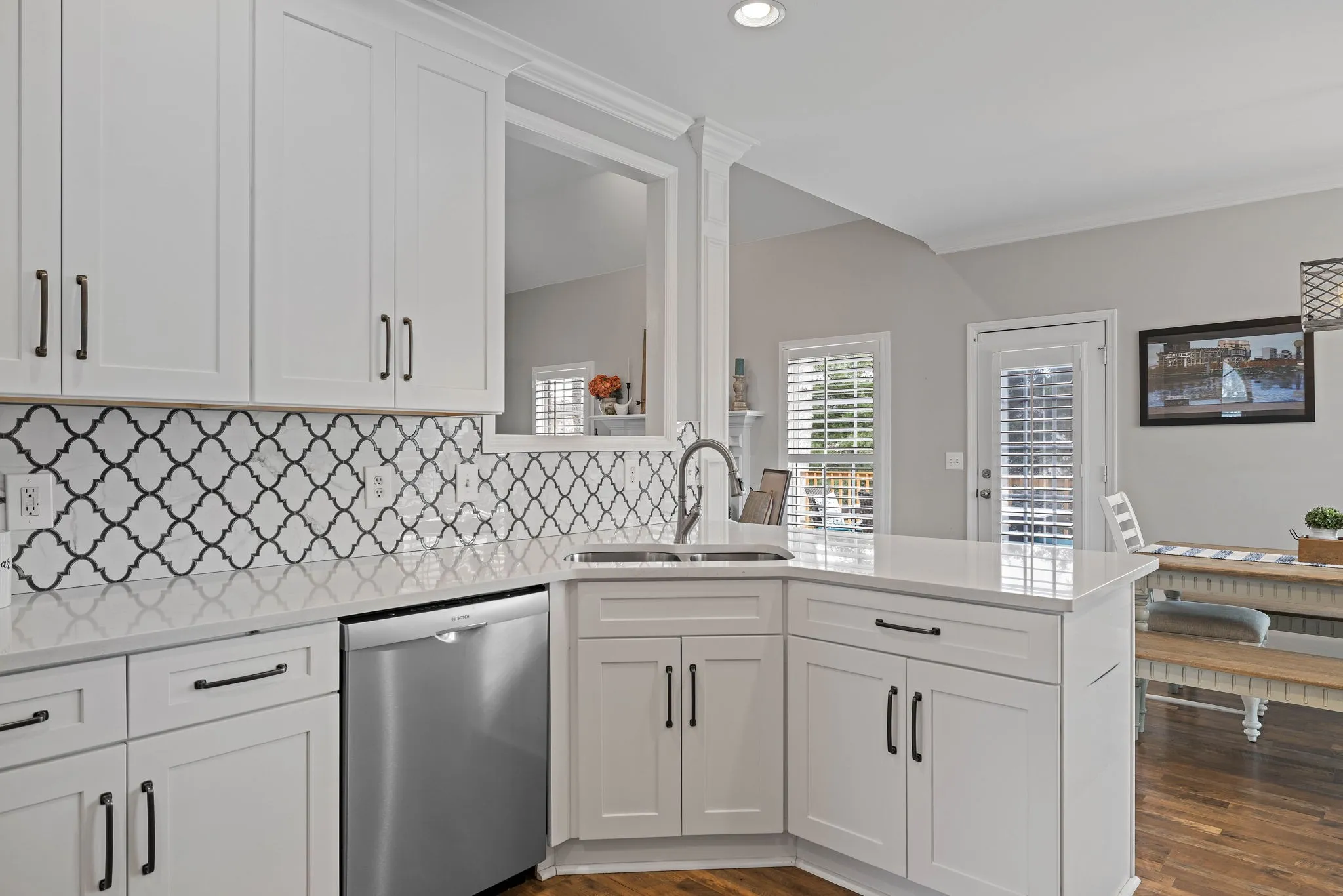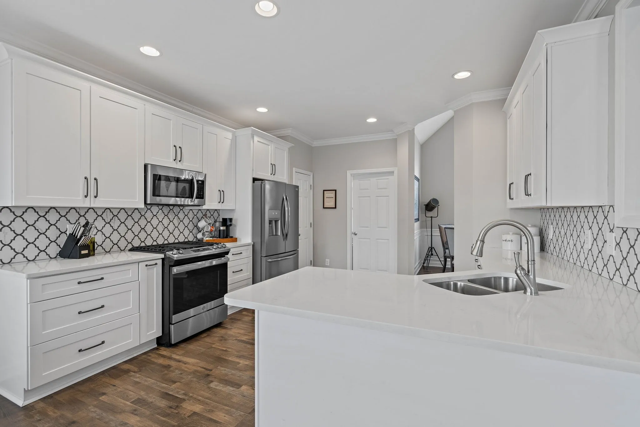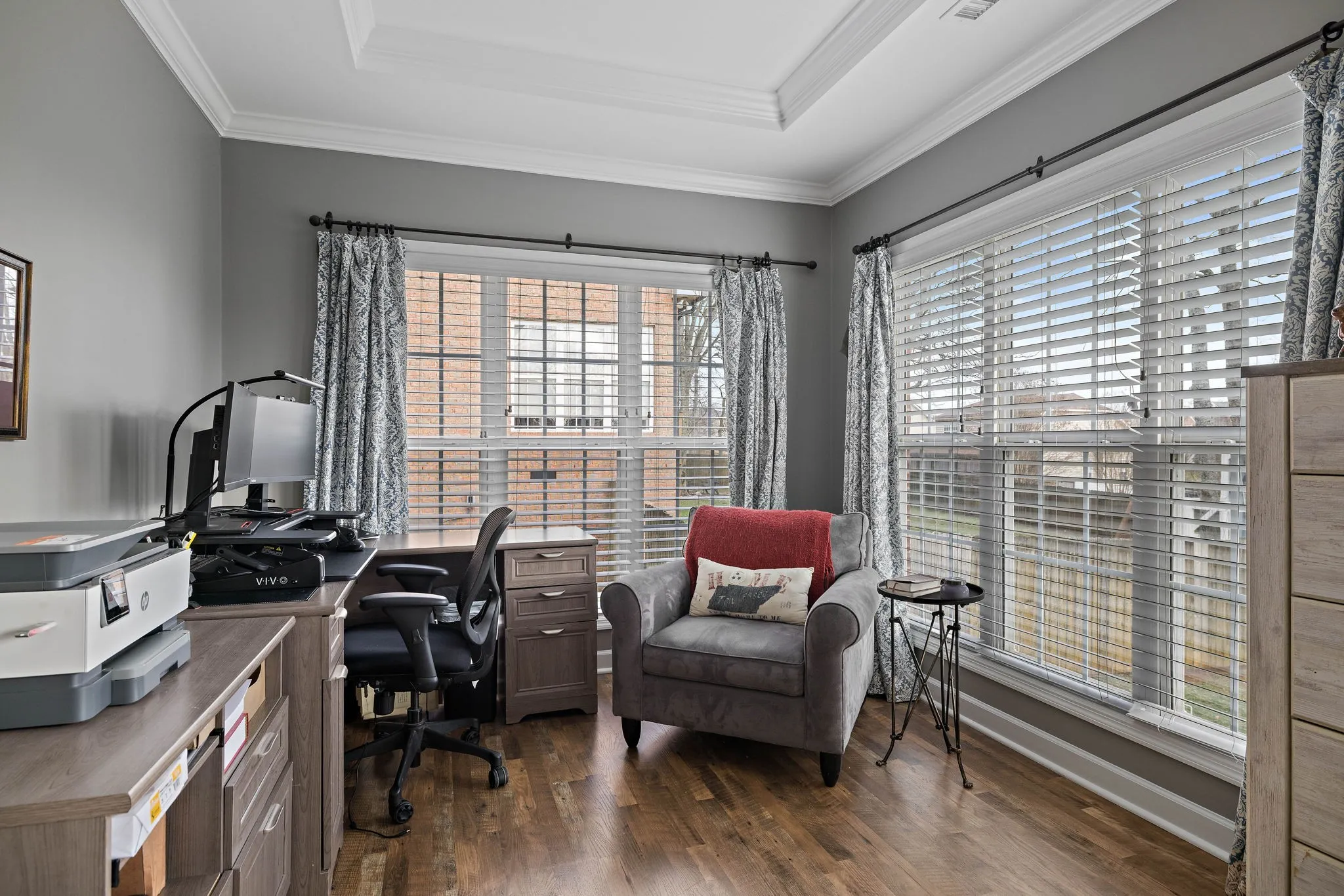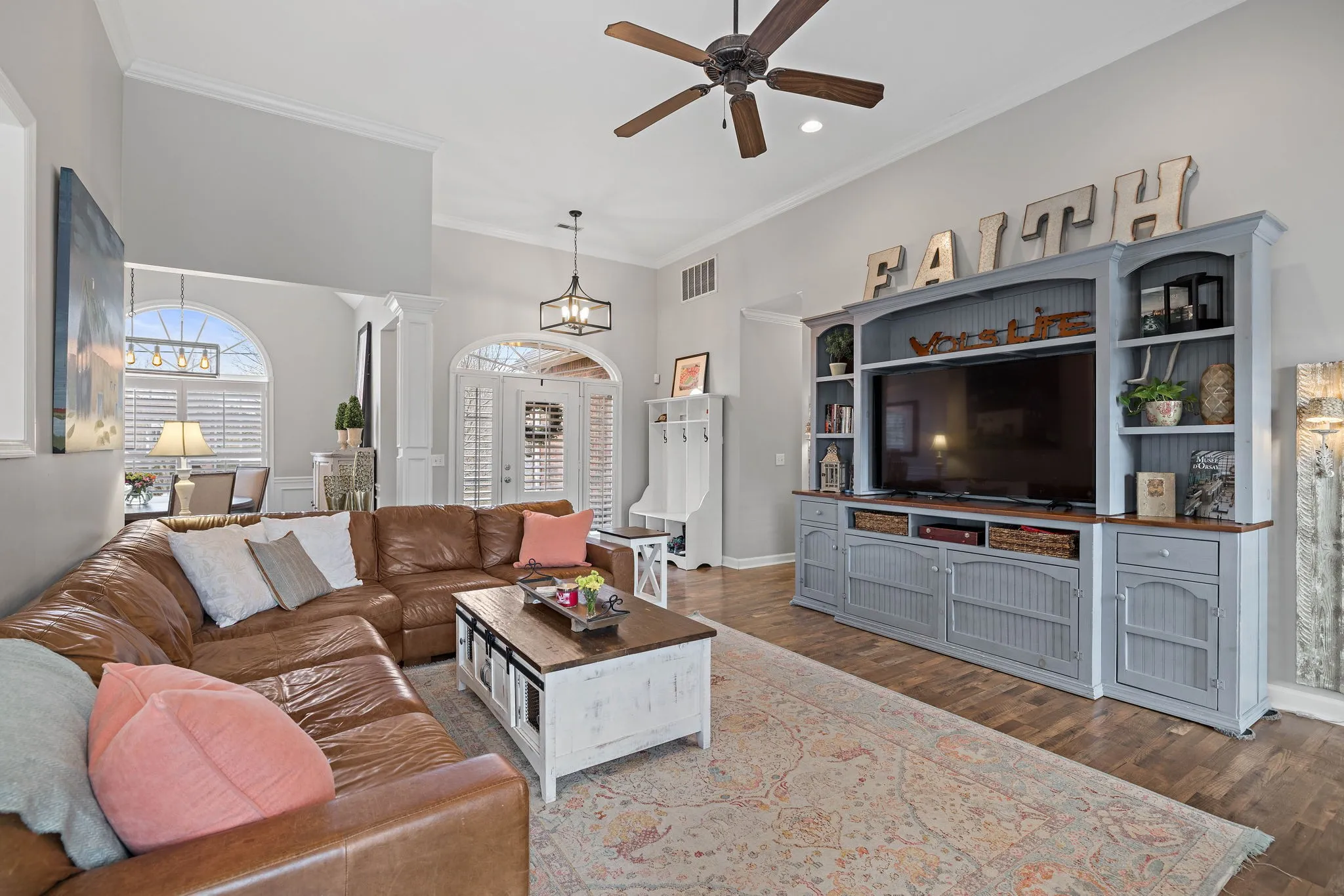 This beautiful 4 bedroom, 4 bathroom home in the Crowne Pointe community, in Thompsons Station, has been recently renovated and is beautiful. Recent renovations include: new laminate floors on main level, new kitchen cabinets, new stunning tile backsplash and quartz countertops, new kitchen appliances and plantation shutters. Roof is 2.5 yrs old. Primary on main! The bathroom in the primary suite also been updated with a new, large tiled shower, new tile floors, new cabinets, new quartz countertops and custom built-ins in the primary suite closet. Upstairs will you find a bedroom with full bathroom. Downstairs has a large open living/bonus room, that’s currently being used as an office and living room. Downstairs also has a full bathroom, and 2 large storage rooms that are heated and cooled. Storage galore in this home! The large fenced in back yard is ideal for entertaining and relaxing. It also comes with a 2 story deck that is amazing! Make plans to see this one in person!!