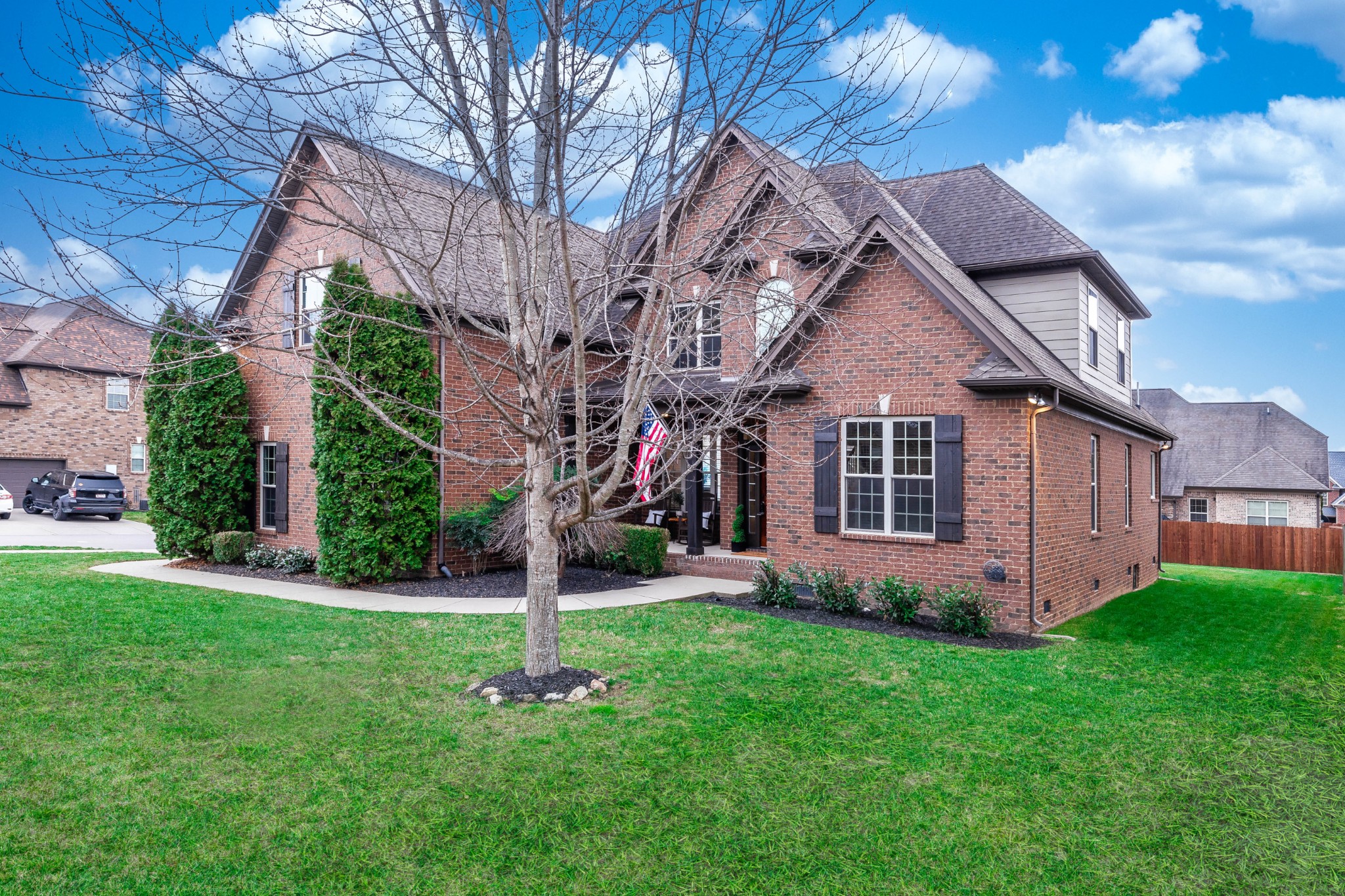 +"PublicRemarks": "Nestled just a few miles away from June Lake & the new Buckner Rd interchange, this stately home is situated in desirable Dakota Point. This all-brick exterior home exudes curb appeal with an inviting covered porch, & side-entry 3 car garage. The foyer leads right into spacious living characterized by custom trim work & a seamlessly flowing floor plan. The living room features two story ceilings & a fireplace. The kitchen offers SS appliances, ample granite counter tops, warm cabinetry, & adjacent breakfast area. The primary bedroom includes a generous walk-in closet & en-suite bathroom w/ two split vanities, shower, & luxurious tub. The home office is also located on the main level. On the second level are 3 more bedrooms (1 with a private bathroom), & a huge bonus room with a impressive surround sound system. Top-rated schools, parks, shopping, & dining options are all within reach. Easy access to major highways. Franklin, Columbia, & Nashville are all just a short drive away."