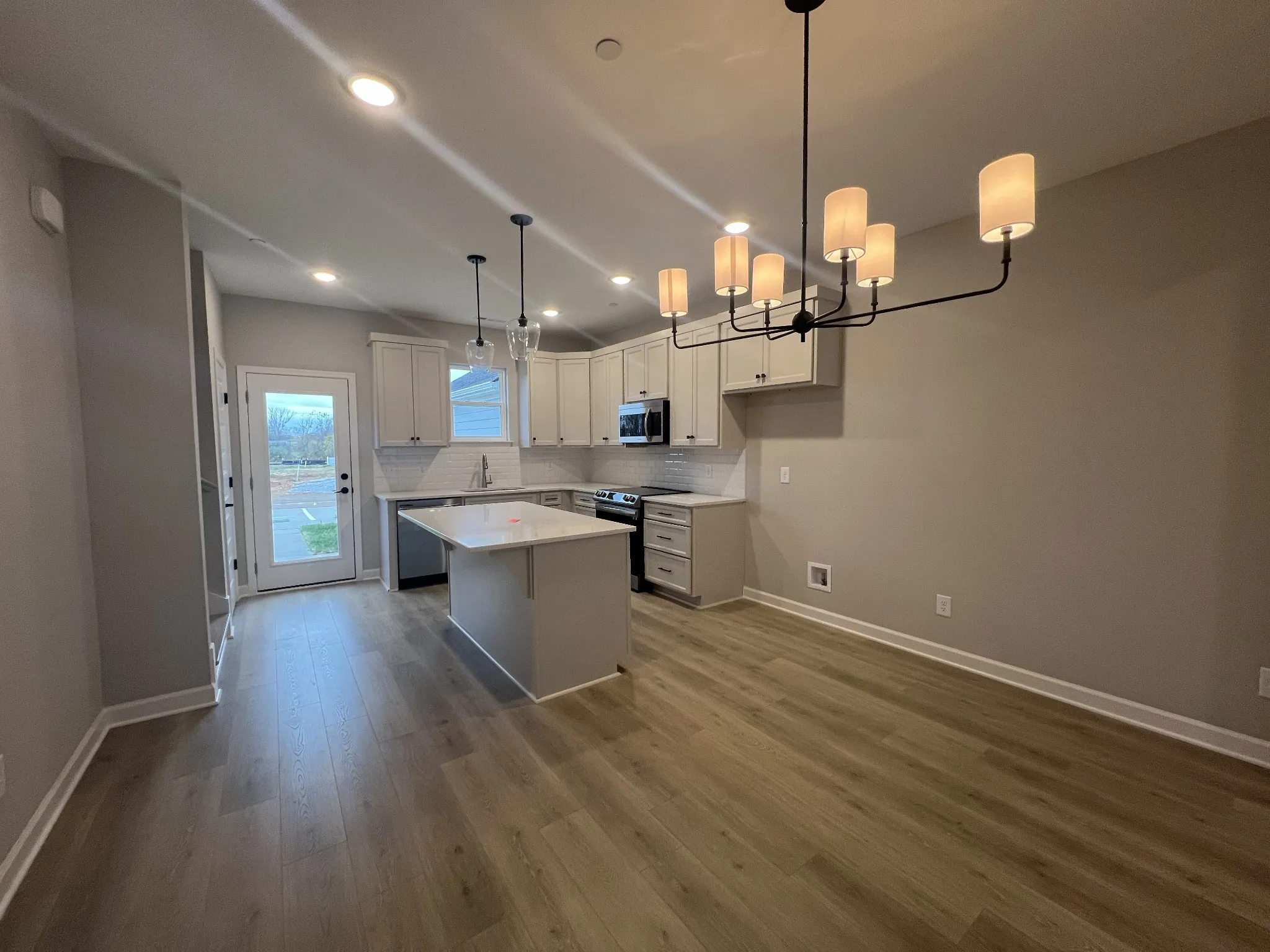 MOVE IN READY! Williamson County Schools, Walk to Shops & Restaurants! 2 bdrm/3 Bath townhome with BALCONY and 2 dedicated parking spaces behind unit! Open Floor plan featuring 9ft ceilings 1st and 2nd floor, Mohawk Revwood on 1st fl, solid wood staircase. Beautiful kitchen features quartz counters, large island, tile backsplash, custom built cabinets w/soft close doors and drawers & SS appliances! Primary features large glass enclosed shower with mosaic tile floors and floor to ceiling tile walls, double vanity with granite counters and under mount sinks. Additional large bedroom upstairs with en suite bathroom and walk in closet!