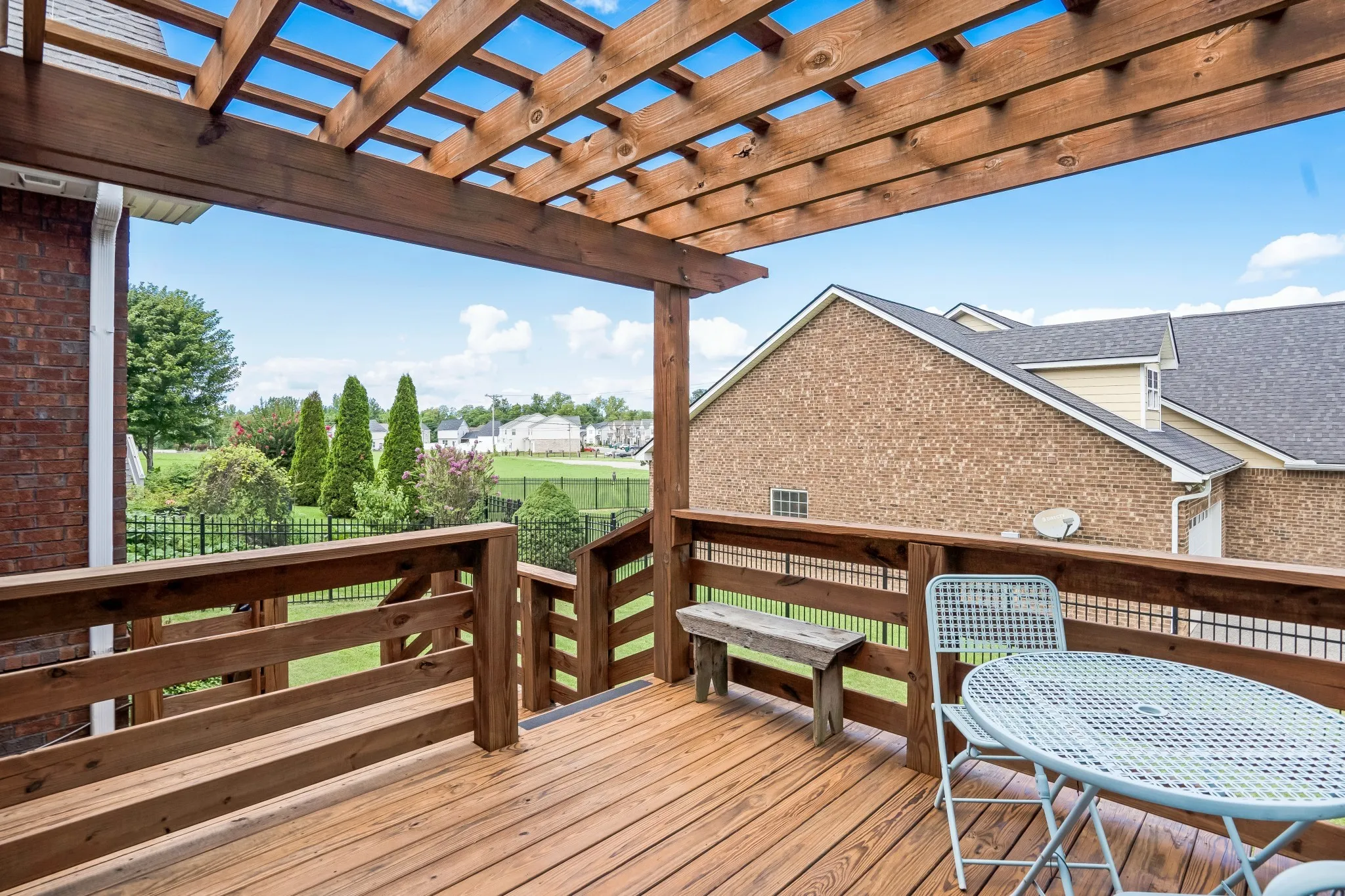 REDUCED $20,000!! All brick home has 3 bedrooms/2 baths with hardwood floors throughout and carpet in the bedrooms. The primary bath was recently remodeled and has a tiled walk-in shower. Extras include a large bonus room, walk in attic, and the appliances come with the house including washer, dryer, and refrigerator! The house has a large laundry room with utility sink, closet, and cabinets. All bedrooms have walk in closets. The home is equipped with 2 HVAC systems and a ceiling fan in every room. The fenced back yard has a 2 tier deck and a pergola to relax and enjoy. The $25 HOA includes a neighborhood pool, playground, and sidewalks and you are only minutes from Fischer Park with splash pad, walking trails, and tennis courts. Recently built Battle Creek elementary and middle school are 5 minutes away with a new high school coming soon. You will be close to shopping and Saturn Parkway/I-65.