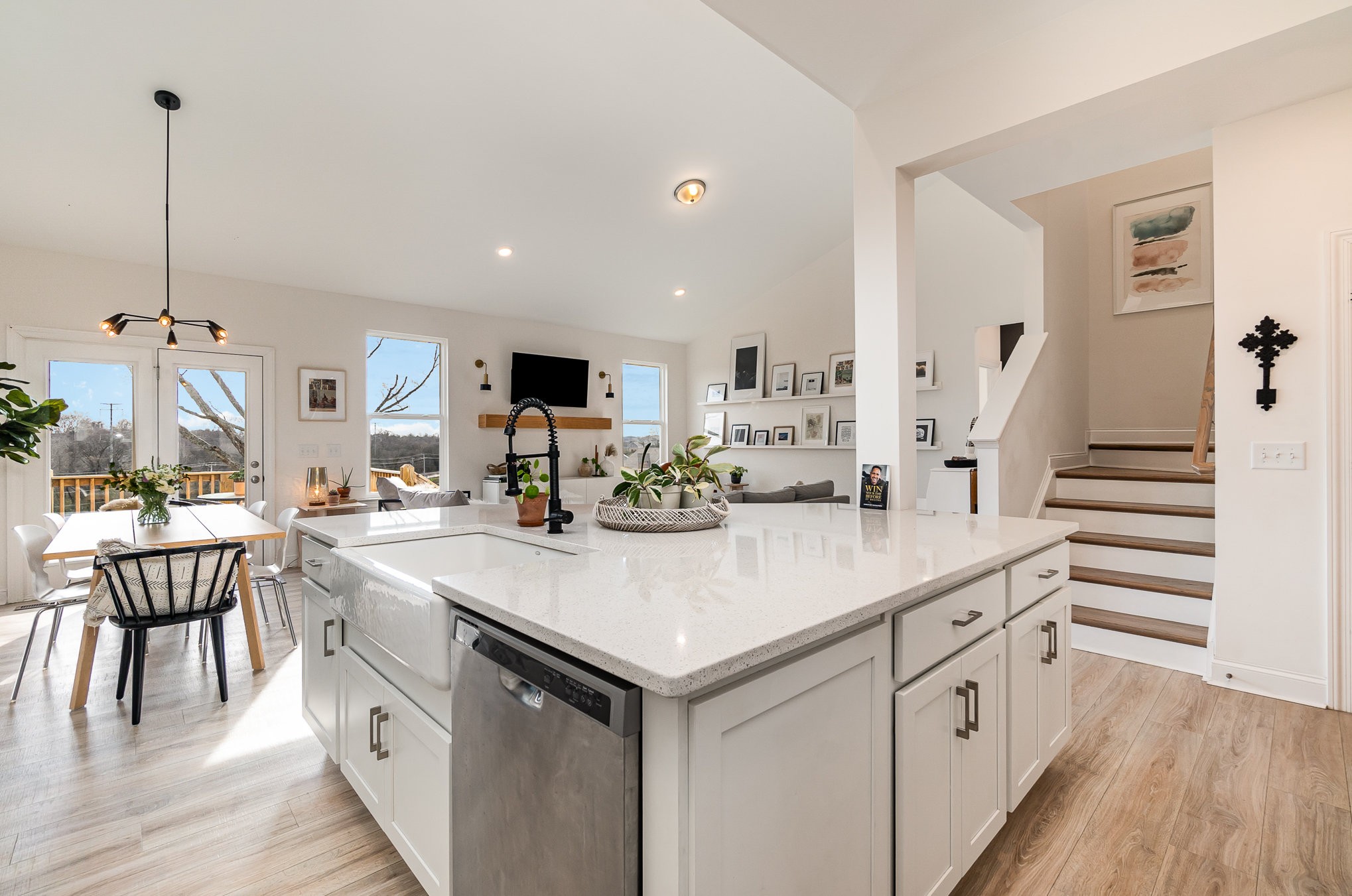 Welcome home. Located perfectly in the coveted Harvest Point subdivision, immaculate detail sets this 4BD/3.5BA home apart from all the others! The moment you step into this beautiful, peaceful home, you notice the natural light shining into the modern, open floor plan. The upgrades include a luxury master suite, open custom shelving, smart s/s appliances (including a 5-burner gas range), farm sink, and a massive kitchen island, perfect for entertaining. Enjoy your coffee on the front porch or steal away to the rear deck, the perfect place for star-gazing or enjoying the panoramic view! Don’t miss the insulated office/music studio for a soundproof experience, the magical floating loft-bed, or the pre-wired data ports and motion-sensored lighting. Neighborhood amenities abound with miles of walking trails (right out back!), a gated pool and clubhouse, a “town-square”, a community garden, and a dog-park! Conveniently located near shopping, restaurants, entertainment, highways, and more!