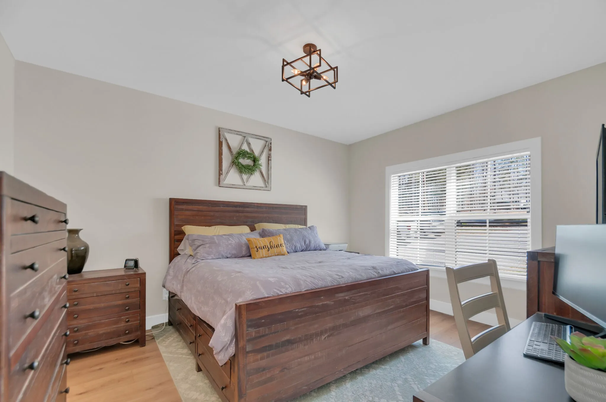 BETTER THAN NEW with PRICE IMPROVEMENT! Thousands of $ in upgrades since purchase 9/23* Serene country setting on LEVEL 1.08 acre lot* BEAUTIFUL interior finishes with Craftsman flair! GORGEOUS WHITE KITCHEN with upgraded shaker cabinetry*Soft close drawers* QUARTZ countertops* Stainless steel appliance pkg* WIDE PLANK LUXURY VINYL FLOORING THROUGHOUT! Custom Cordless Blinds installed on EVERY WINDOW! Vaulted living room* Split bedroom plan* COVERED FRONT PORCH! Back deck opens to huge, level backyard with brand new 4-PLANK FENCING* STARLINK equipment to remain which provides RELIABLE HI-SPEED INTERNET for $120/per mo.* SHOWINGS TO BEGIN THURSDAY 3/14*