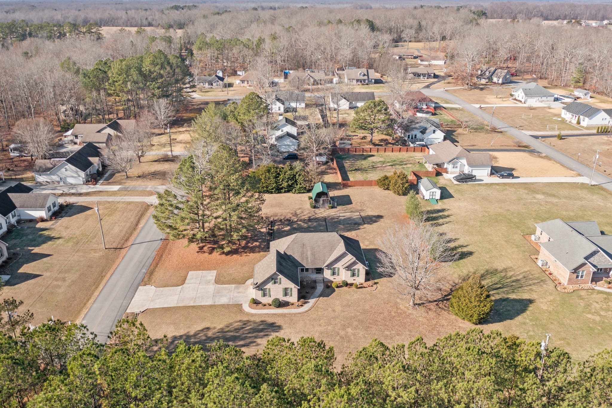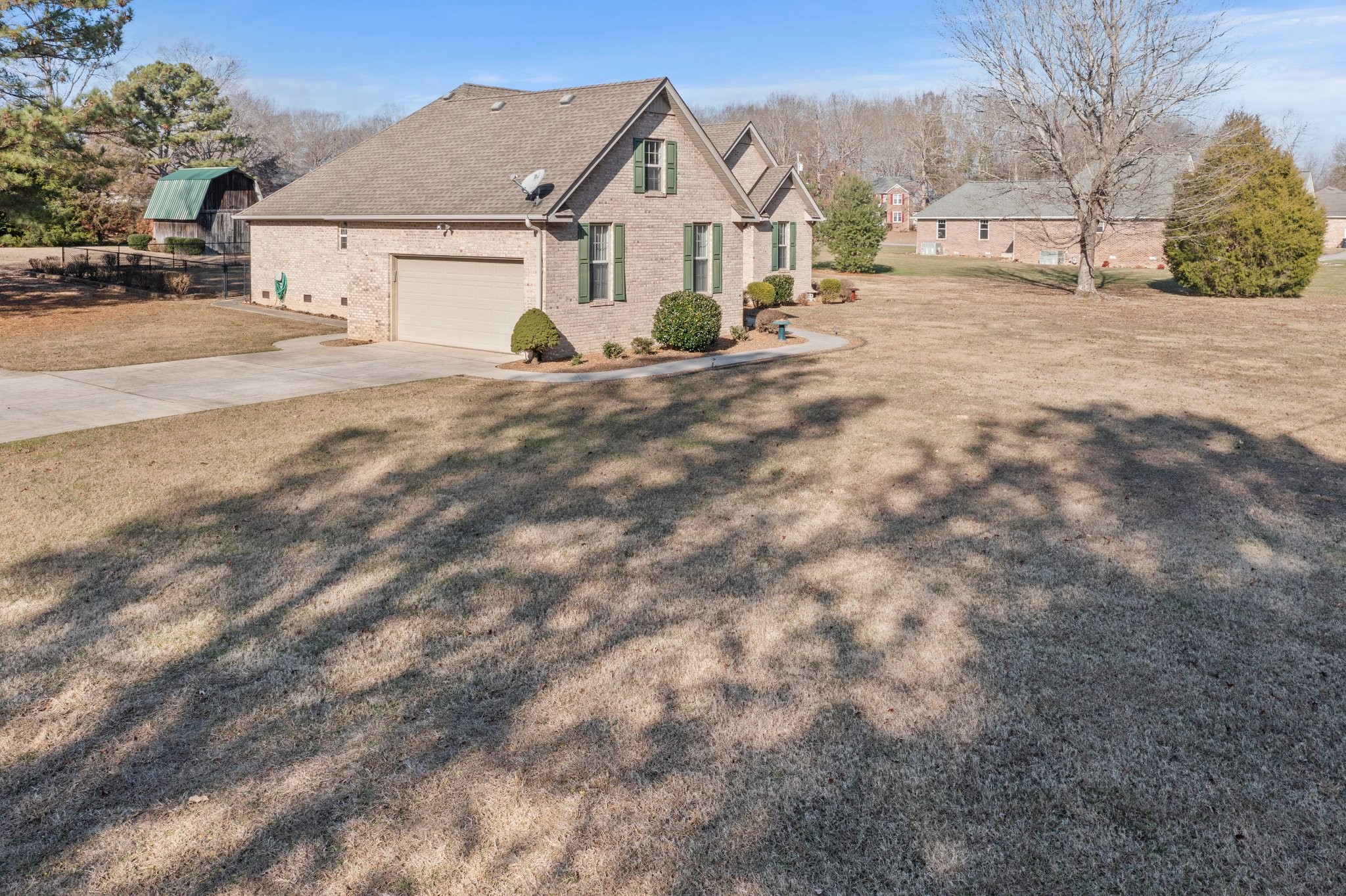 Beautiful all brick home on a 1 acre corner lot w/ amazing privacy, gorgeous landscaping. So much space for outdoor activities, huge storage bld w/loft & electricity. Partially fenced w/separate dog run. Covered patio w/ permanent gas grill. The care into this amazing home is nothing short of pristine, hosting a large great rm w/ceramic gas log fp w/remote, trey ceiling, glass doors to covered patio, engineered hardwood floor, tile in wet areas, & soft carpeting in the bonus/4th br. Huge dining room w/trey ceiling, gourmet kitchen w/granite, tile backsplash, stainless steel appliances, pantry, bar area. Lots of natural light in the spacious breakfast rm. Lovely primary bedroom w/trey ceiling, updated tile shower in private bath & Large walk-in closet. Two really nice additional bedrooms w/ample closet space. Upstairs bonus or media room has closet & extra storage. Oversized two car garage w/shelving, large concrete drive w/extra parking. NO CITY TAXES! Close to Tims Ford Lake.