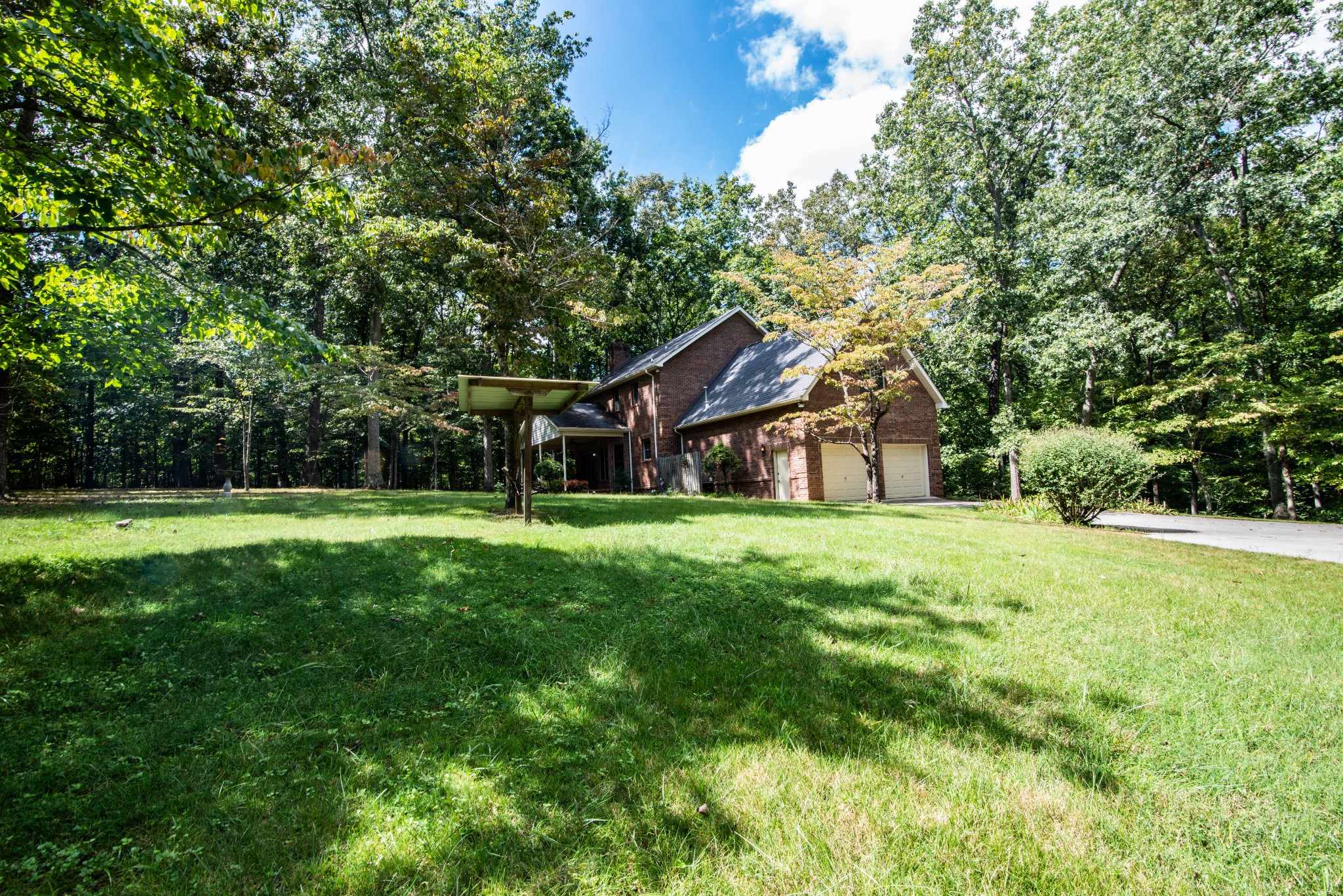 Beautiful brick home on 5.14 acres in a park like setting. Sit on the back porch and enjoy all the privacy. Finished detached garage with 1479 sqft 2 upstairs rooms are heated and cooled. Two garage doors down, separated by a wide stairwell. 20×13 shed. 3 bedroom home plus an office that could be a fourth bedroom, adjacent to a full bath. A front staircase leads you to 3 bedrooms. The rear staircase takes you to a huge bonus room. Large den downstairs with hardwood floors and gas fireplace. Refrigerator and washer and dryer stay.