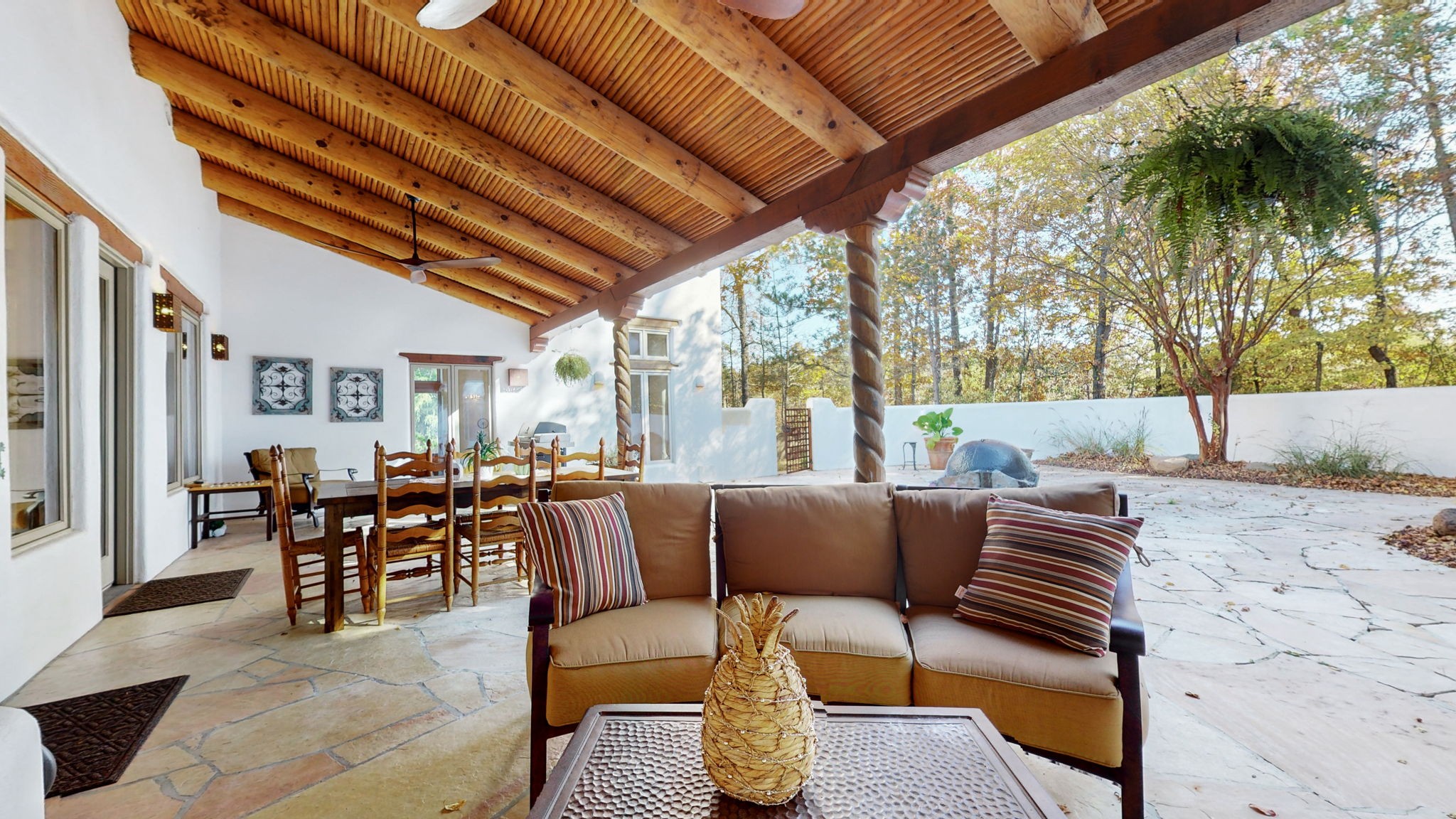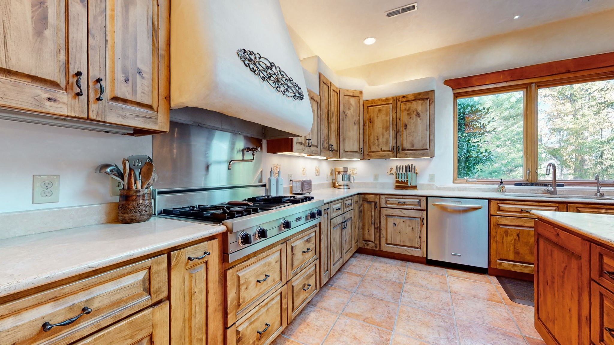 Captivating home with a rich Spanish influence! Step into a world of timeless charm and elegance, where every detail whispers of Mediterranean inspiration. Bathed in natural light, the sun-drenched interiors with large windows and open spaces create a warm and inviting atmosphere. The chef’s kitchen boasts hand-painted tiles, commercial appliances, and modern amenities, making it the heart of the home. Multiple fireplaces, both indoors and outdoors, provide a cozy ambiance on cool evenings. The bedrooms are designed for comfort, featuring beautiful en-suite bathrooms. This property seamlessly blends Old-World charm with modern comforts, making it a truly exceptional retreat. Discover the allure of Spanish-inspired living! Includes additional lot to the left of home.