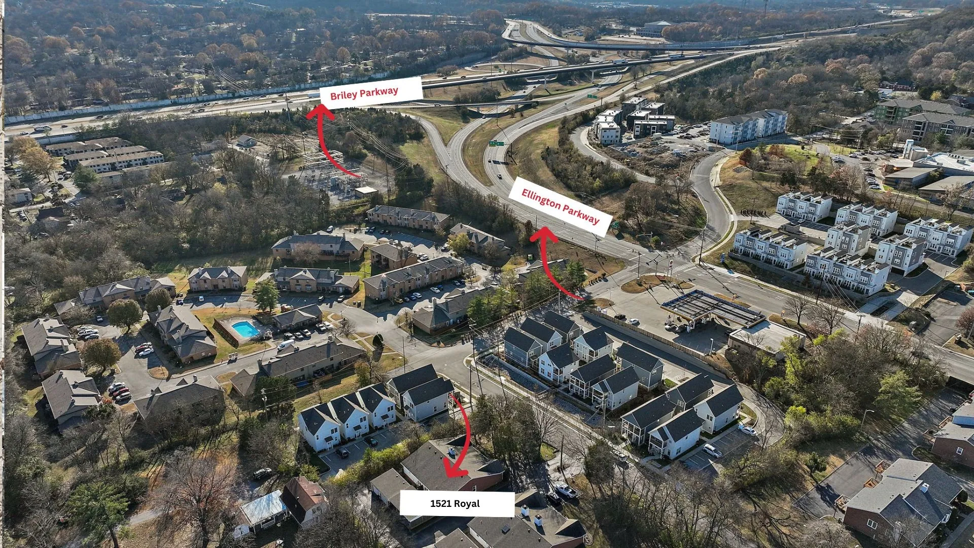- Directions: Ellington Parkway exit Right on Lewis then Right on Royal property on the Left.