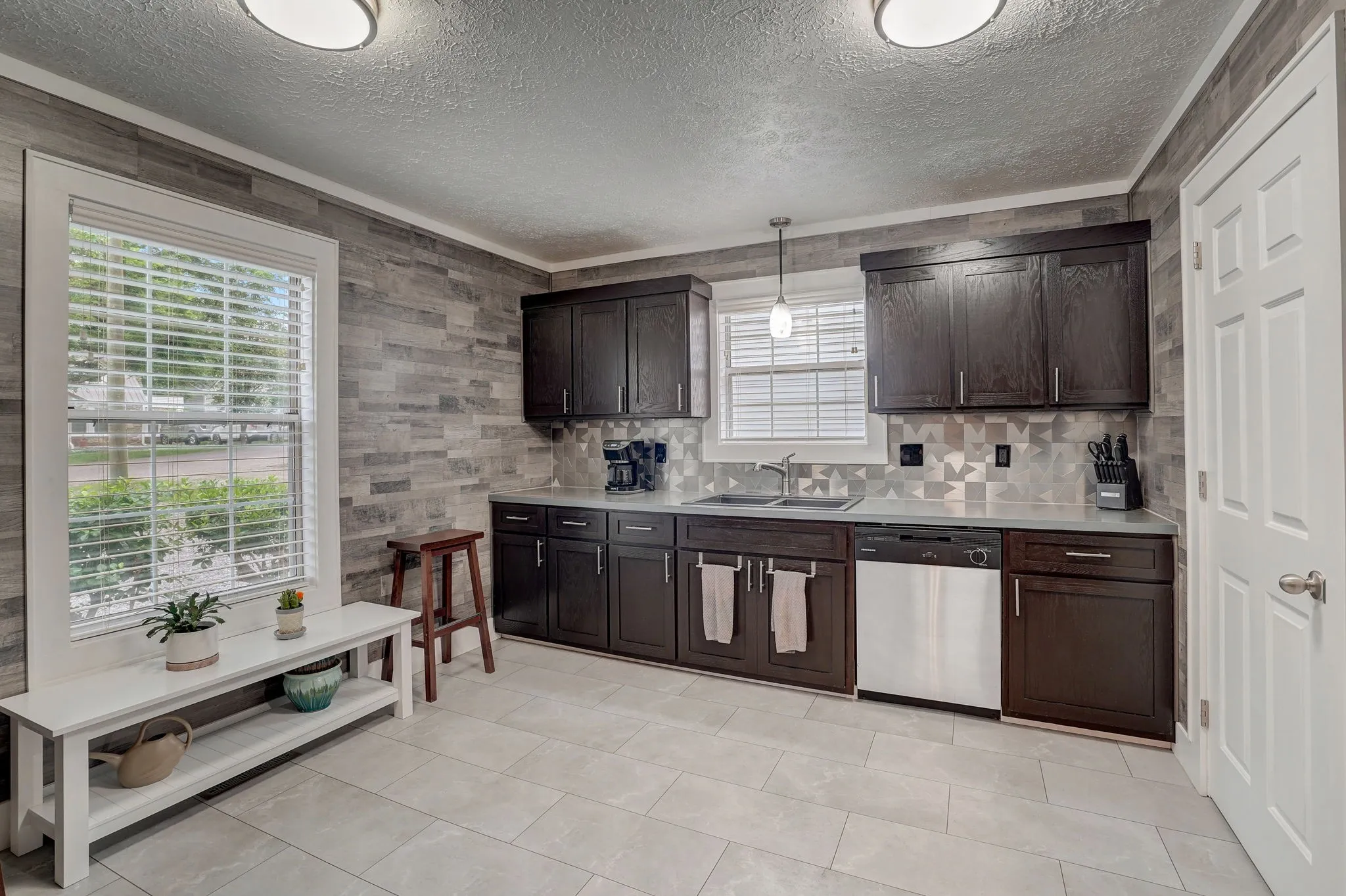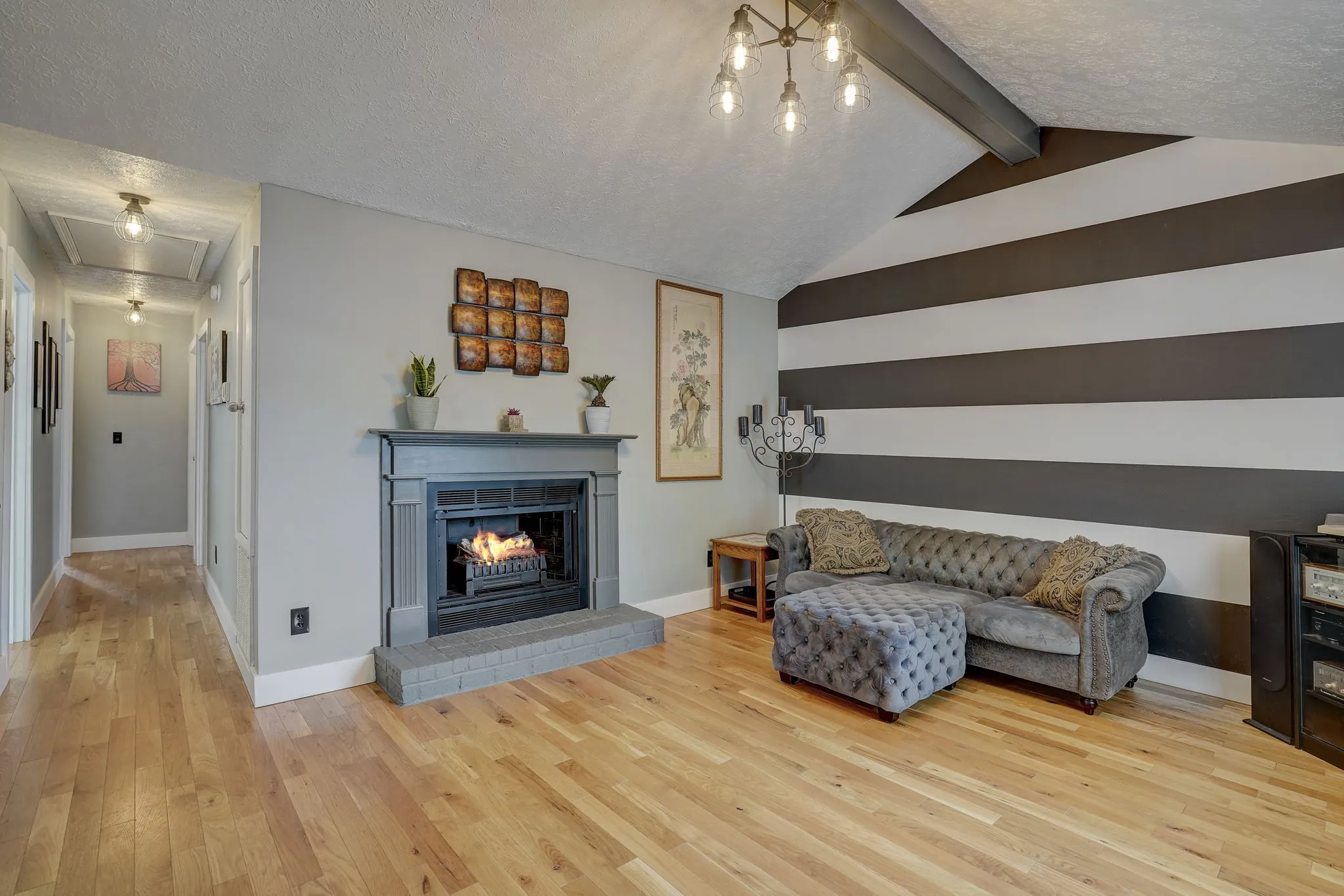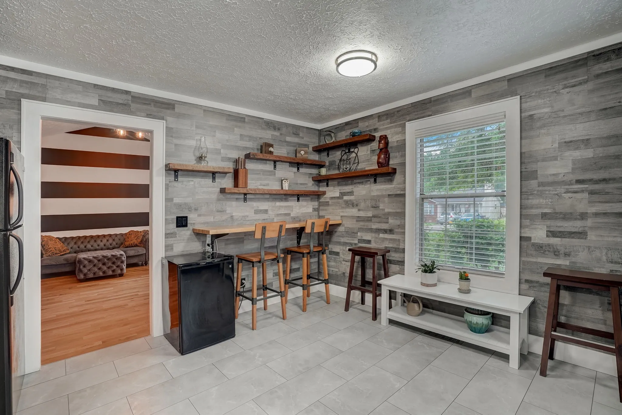 SUPER CUTE, updated Madison home, move in ready! Stylish open front room with accent wall, painted center beam, cozy fireplace and light fixture on a dimmer switch. Spacious kitchen with tile floors, stainless appliances, beautiful dark cabinets! Both bathrooms have been updated with new tile floors, dark cabinets, counters, sinks and toilets. Enjoy time on the rear back porch overlooking the greenery and wildlife!