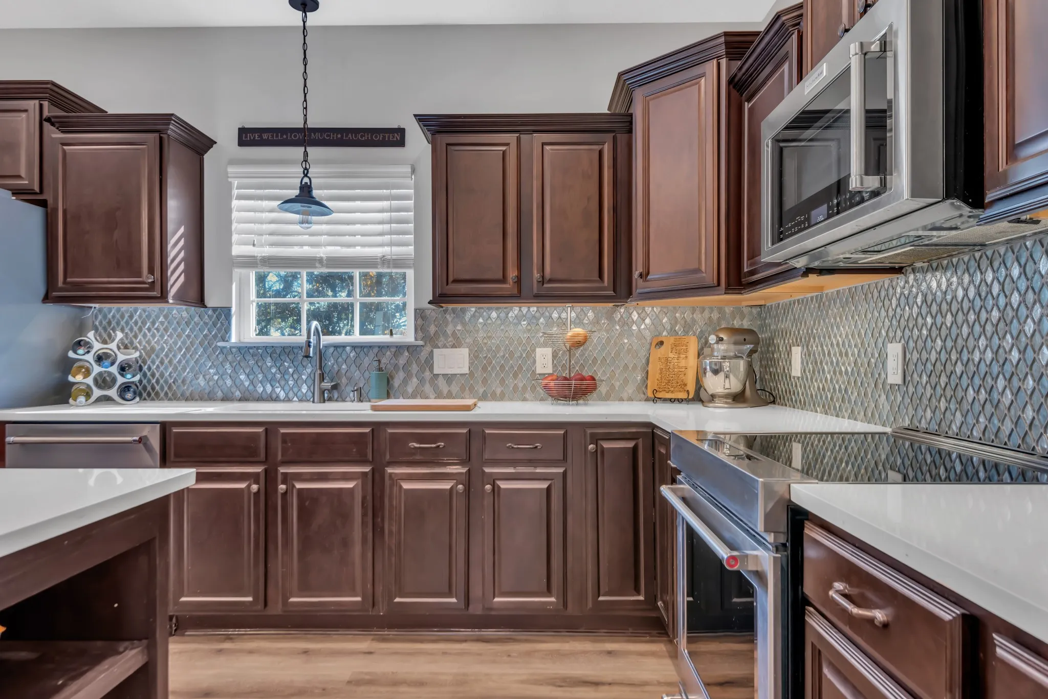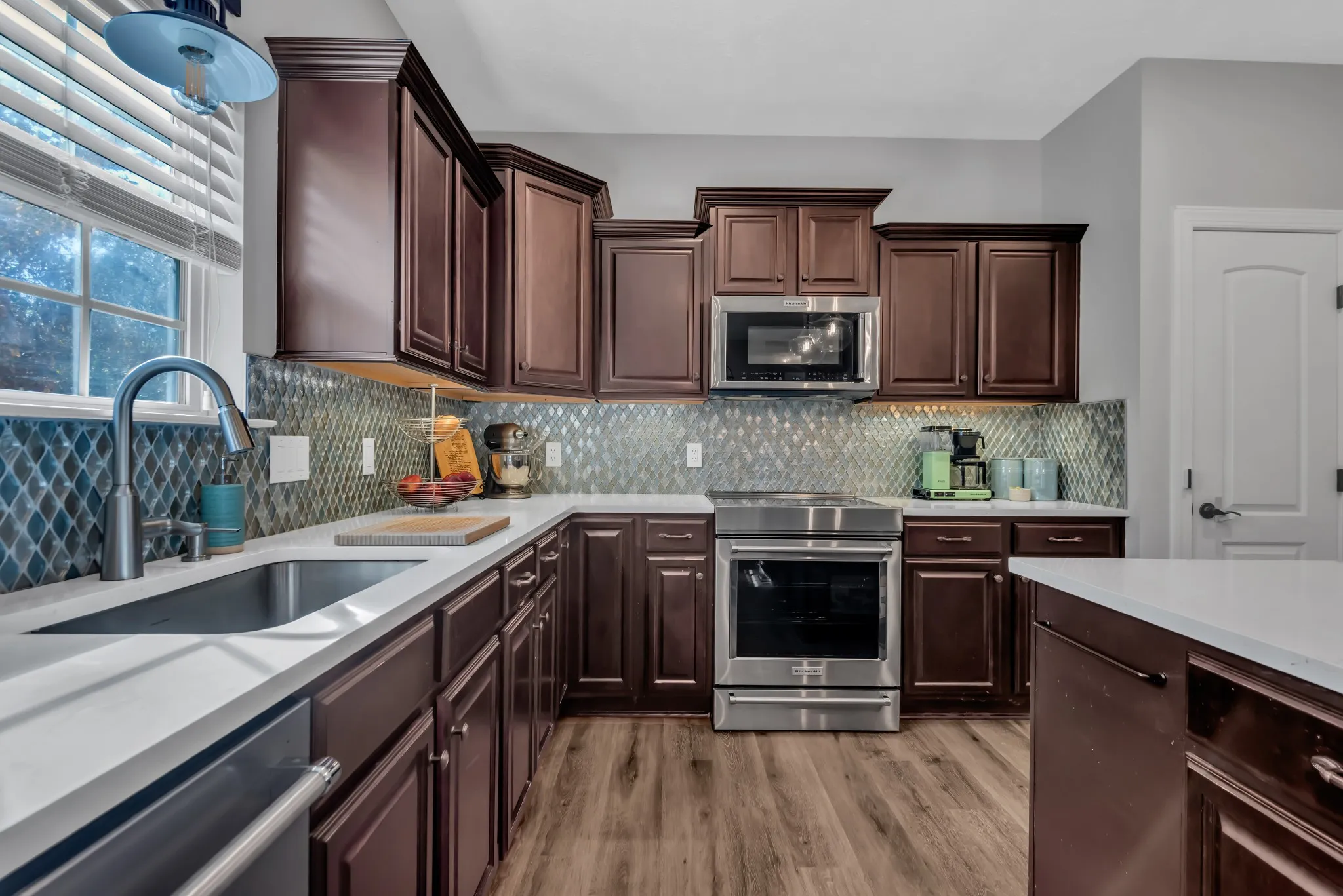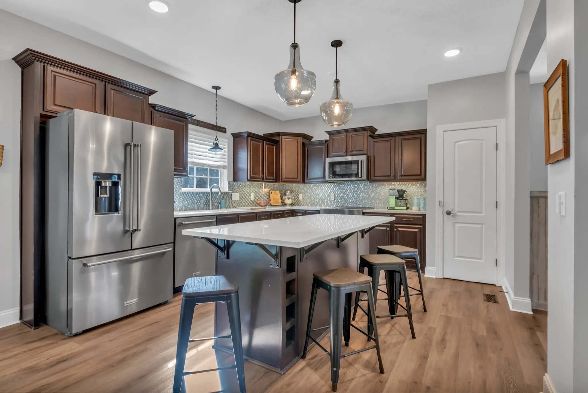 Updated and renovated to perfection! Full kitchen renovation includes a large island, quartz countertops, $10k in new KitchenAid appliances, recessed lighting, tile backsplash, under cabinet lighting, and more. Open concept living area is perfect for entertaining. Master ensuite downstairs with two bedrooms, full bathroom, bonus room, and laundry upstairs. Upgraded garage for the car enthusiast with bright lights, epoxy floors, and storage. New flooring, fresh paint, upgraded lighting, ecobee smart thermostats, great storage, and walk-in closets. Cul-de-sac location that backs to mature trees. New backyard privacy fence and future expansion space possible above the garage. All kitchen appliances remain. Washer, dryer, security system/cameras, and garage tool storage are all negotiable. Get $2,000 off closing costs when using lender Mitch Mallahan with Preferred Rate.
