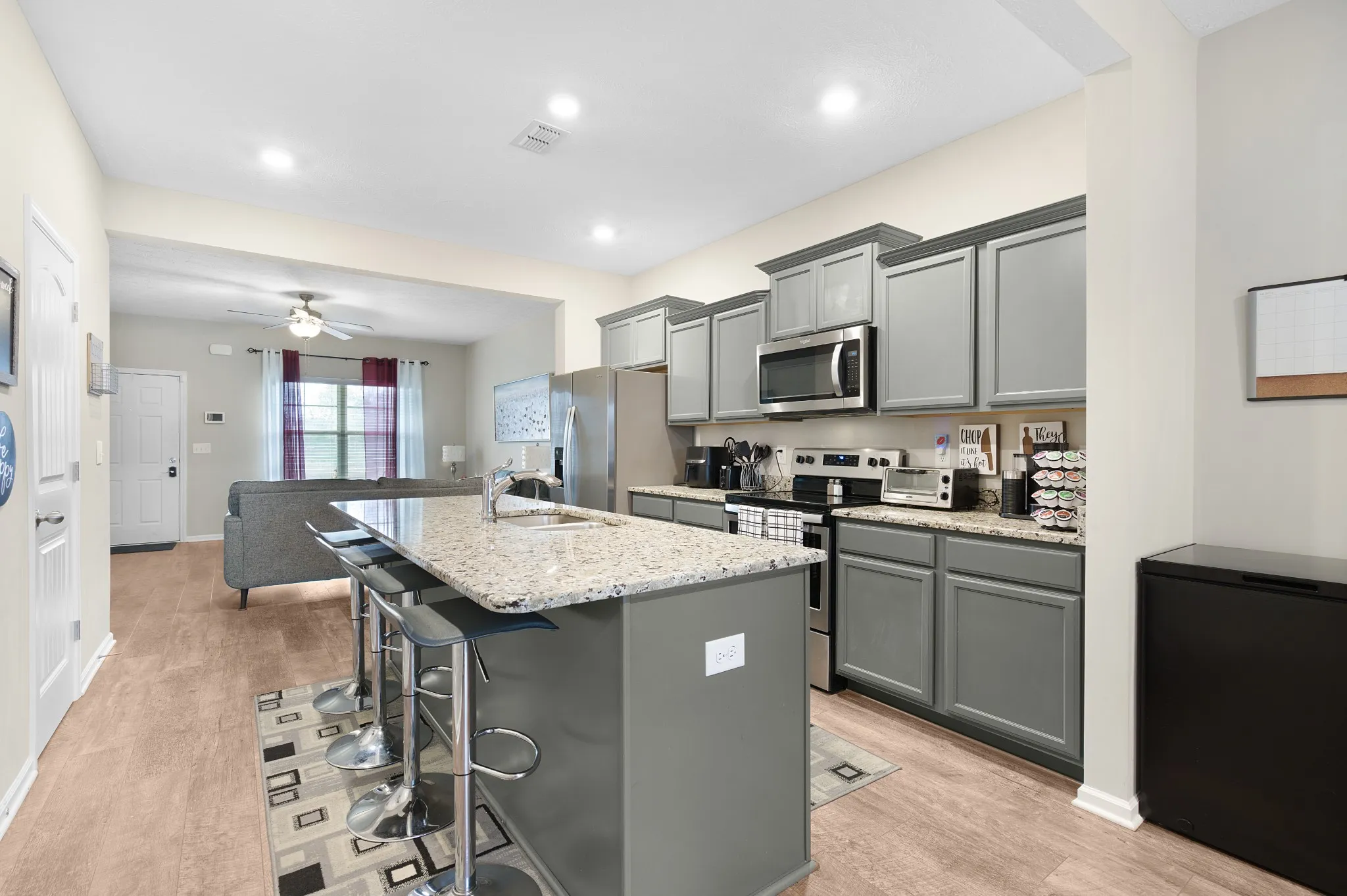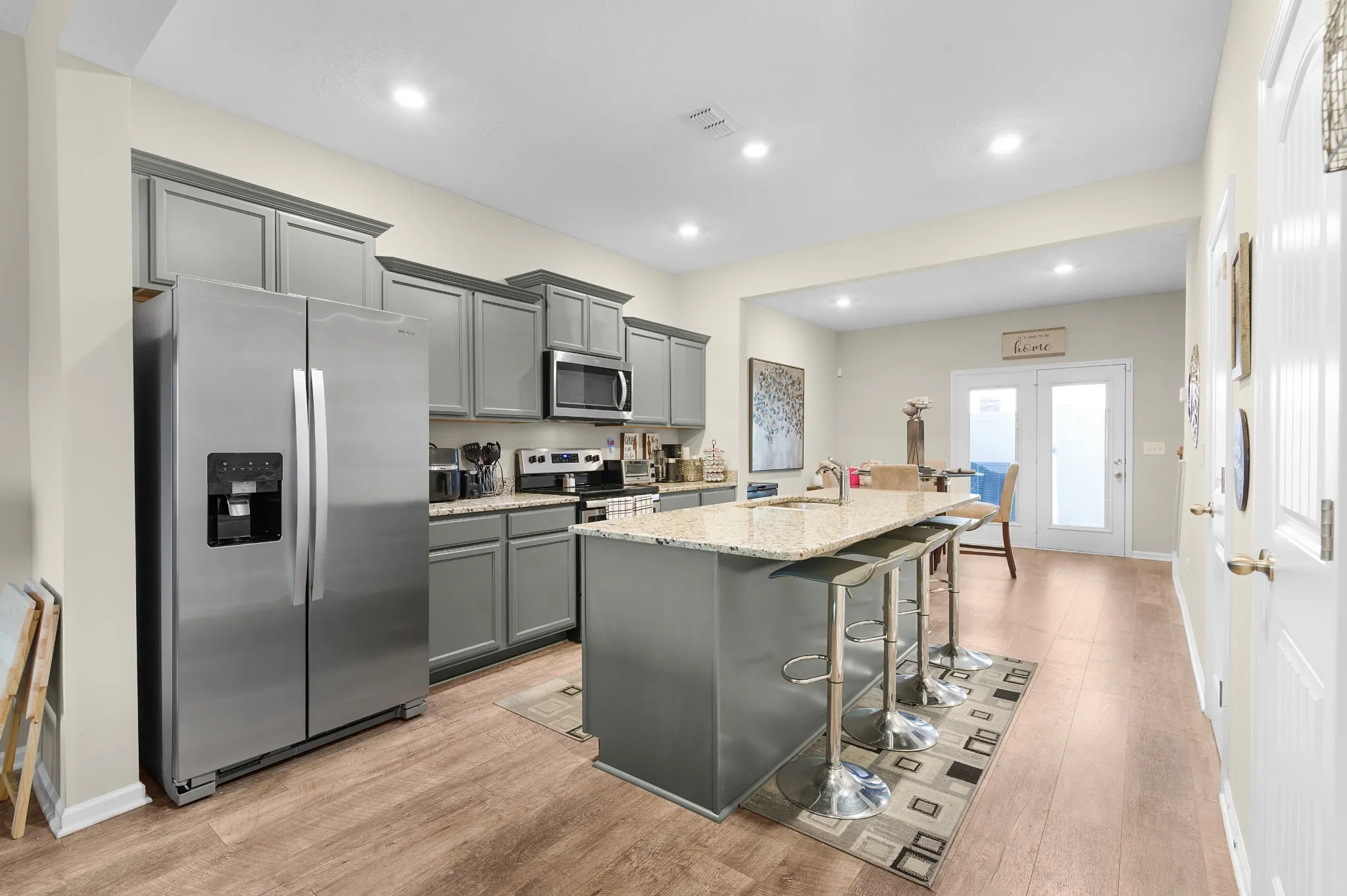 End unit, granite counter tops with island bar and sink, stainless steel appliances, open living room, kitchen and dining area. Privacy fenced patio area with storage. Seller with pay $5000.00 toward closing cost or toward painting (paint is ok but now that furniture is out it shows) Nice side yard area and the privacy of being end unit.