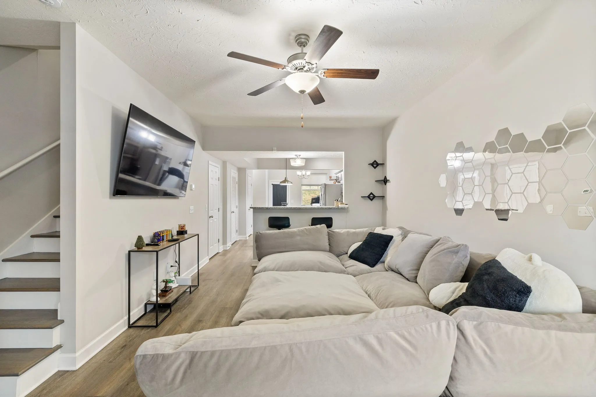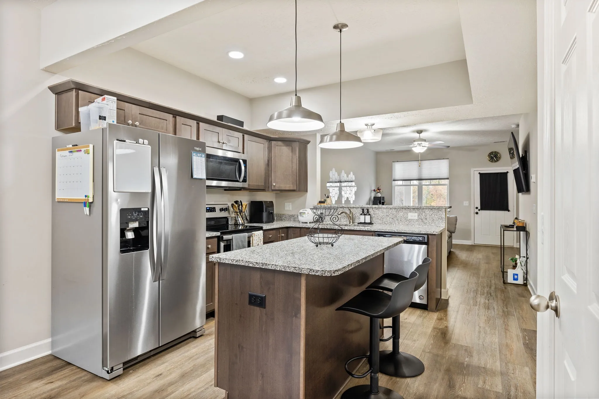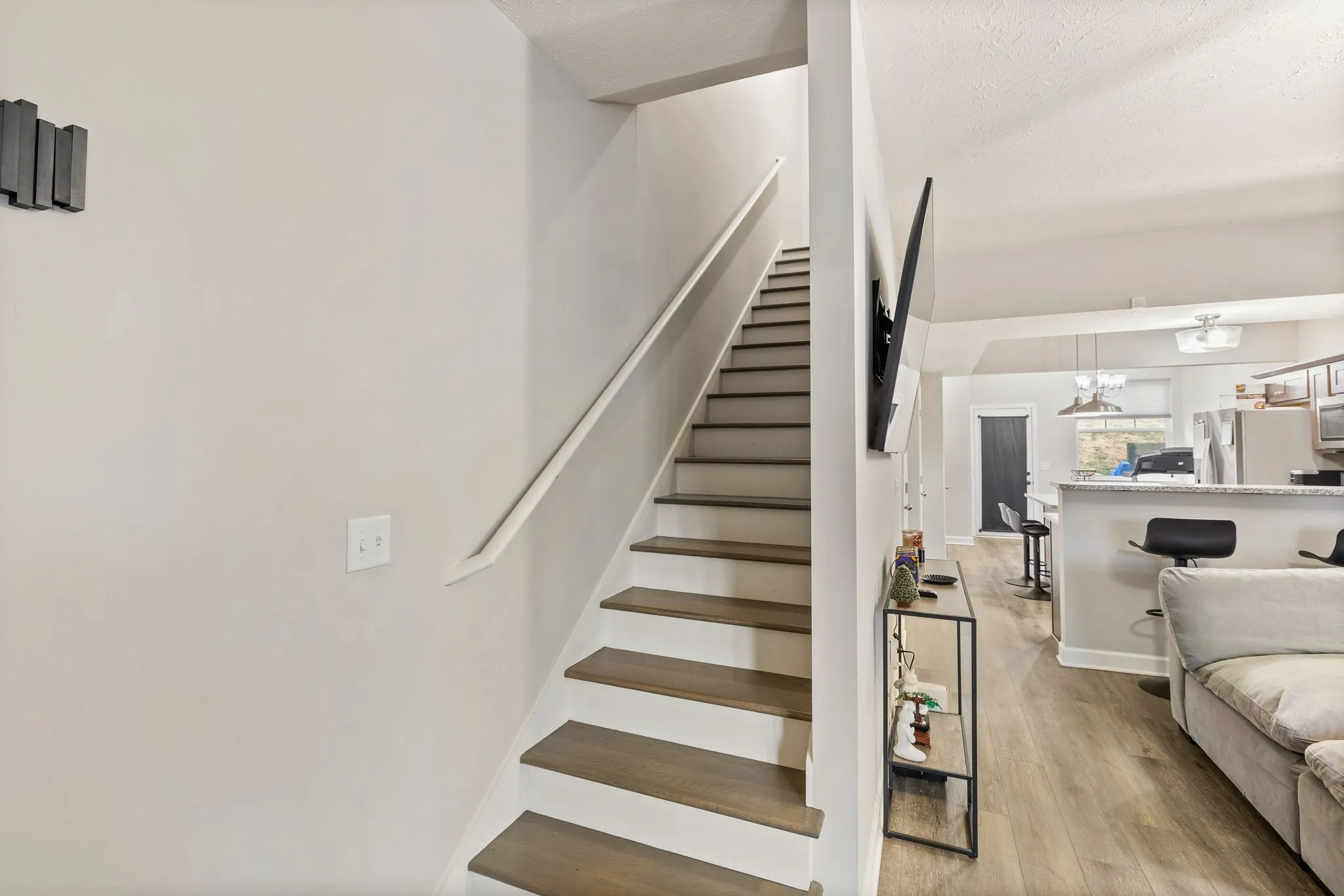 Beautiful townhome, with a spacious kitchen featuring an island and granite countertops throughout and a roomy pantry. This three-year-old townhome still lives like new! The main floor has 9-foot ceilings and plenty of storage space and closets. Hardwood stairs lead up to the bedrooms and separate laundry room. Large primary suite with vaulted ceiling, beautiful, tiled shower, garden tub and large closet. Great location close to I24 and NEW Tanger Mall.