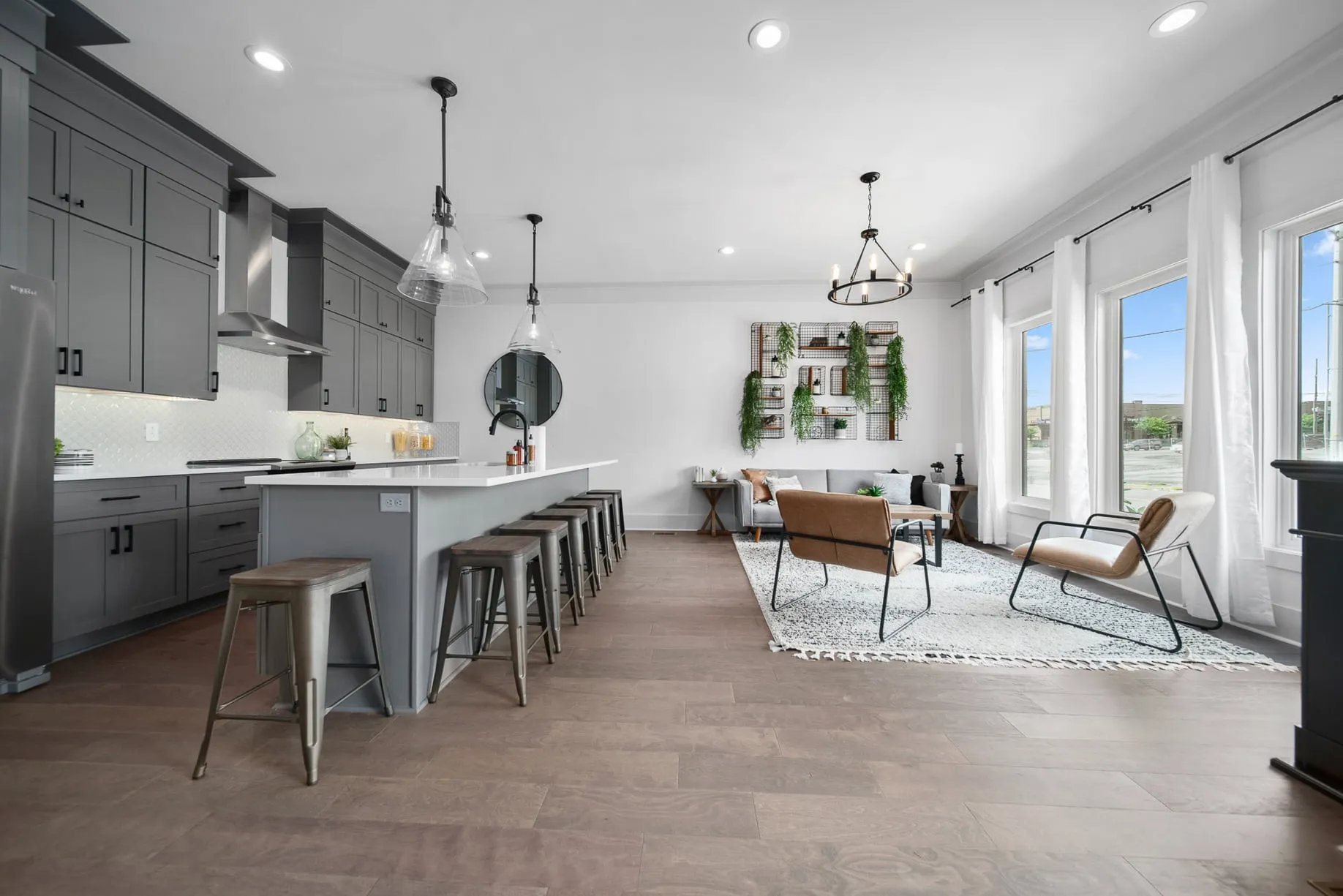 Built in 2018, the home features modern finishes throughout—including sleek quartz countertops, stainless steel appliances, a large kitchen island, hardwood floors, and a tasteful backsplash. Large windows and a private balcony bring in natural light and views. High-speed internet, city water/sewer and central heat and air keep everything simple.\n